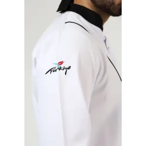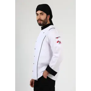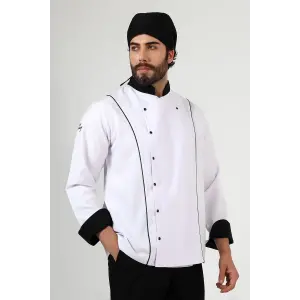 Erkek Aşçı Ceket 01 - Beyaz Siyah Biye
