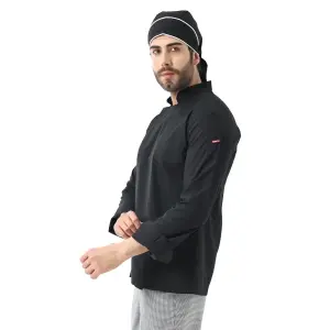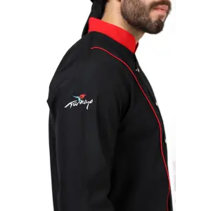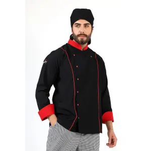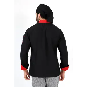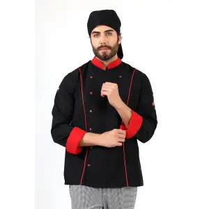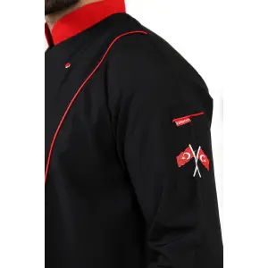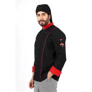 Erkek Aşçı Ceket 01 - Siyah Kırmızı Biye