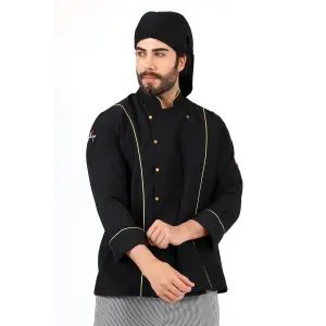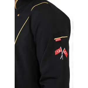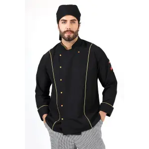 Erkek Aşçı Ceket 01 - Siyah-sarı Biye