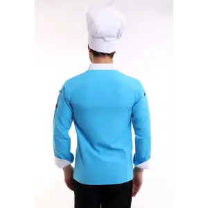 Erkek Aşçı Ceket 01 - Turkuaz Beyaz Biye