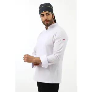 Erkek Likralı Aşçı Ceket - 6401 Beyaz Soft