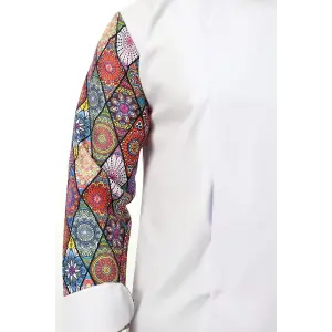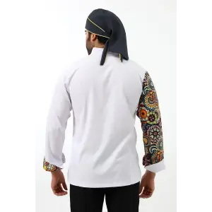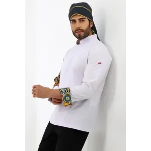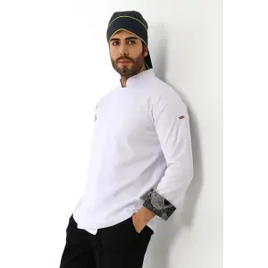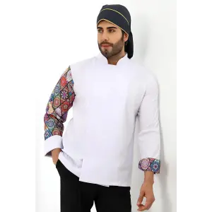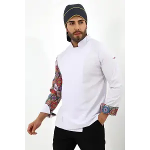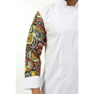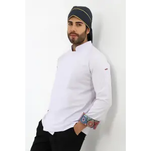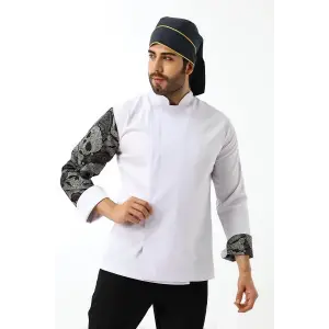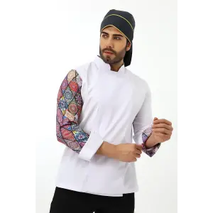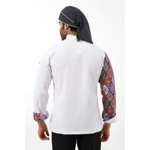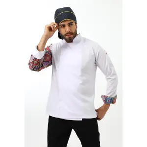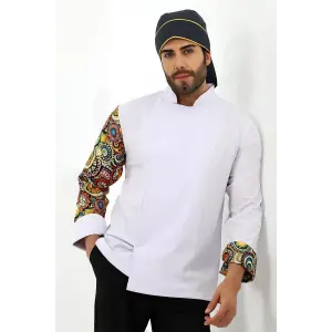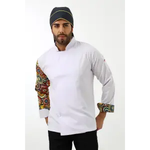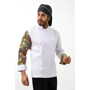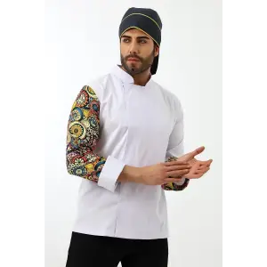 Erkek Likralı Kol Desenli Aşçı Ceket - 6401 Beyaz Renkli Daire