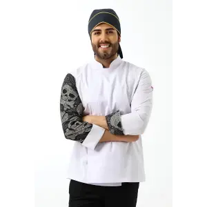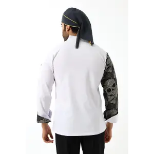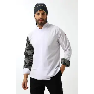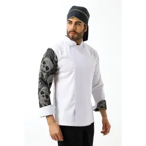 Erkek Likralı Kol Desenli Aşçı Ceket - 6401 Beyaz Kuru Kafa