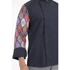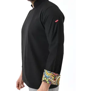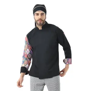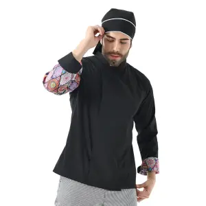 Erkek Likralı Kol Desenli Aşçı Ceket - 6403 Siyah Çini