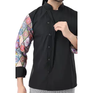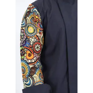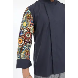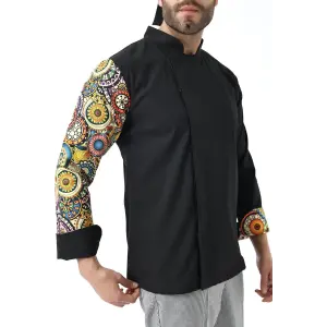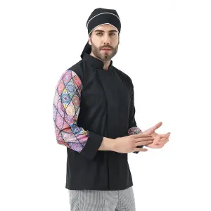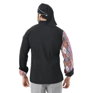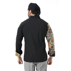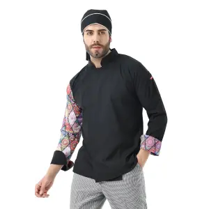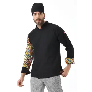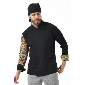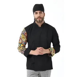 Erkek Likralı Kol Desenli Aşçı Ceket - 6403 Siyah Renkli Daire