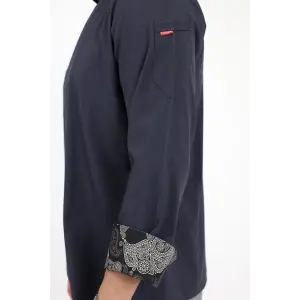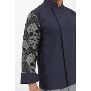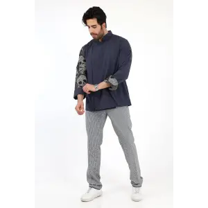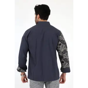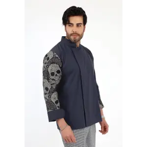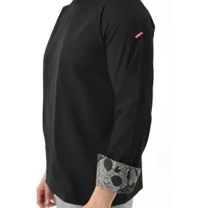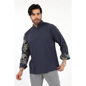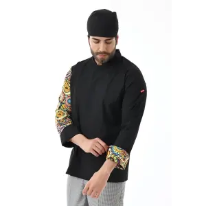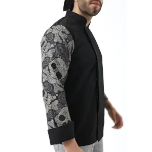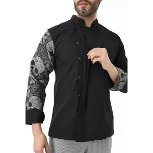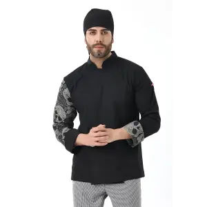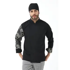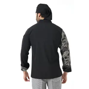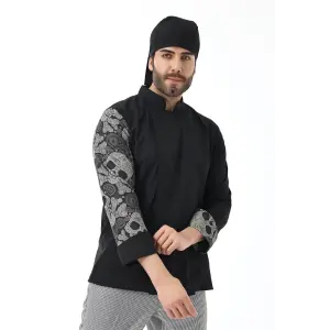 Erkek Likralı Kol Desenli Aşçı Ceket - 6403 Siyah Kuru Kafa