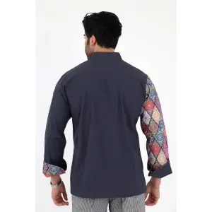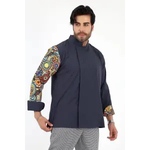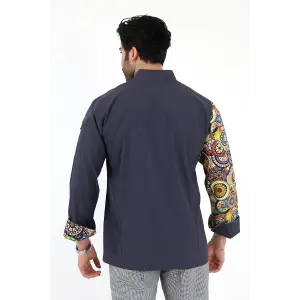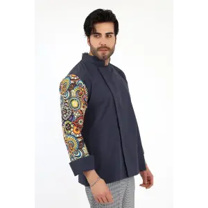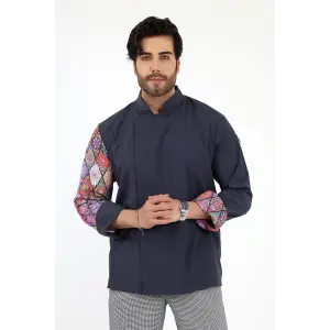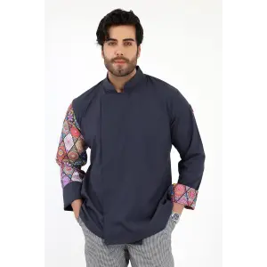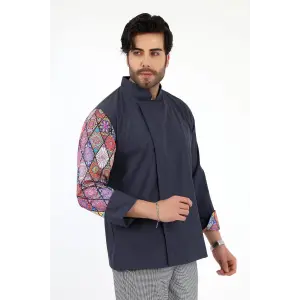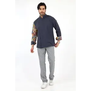 Erkek Likralı Kol Desenli Aşçı Ceket - 6417 Füme Çini