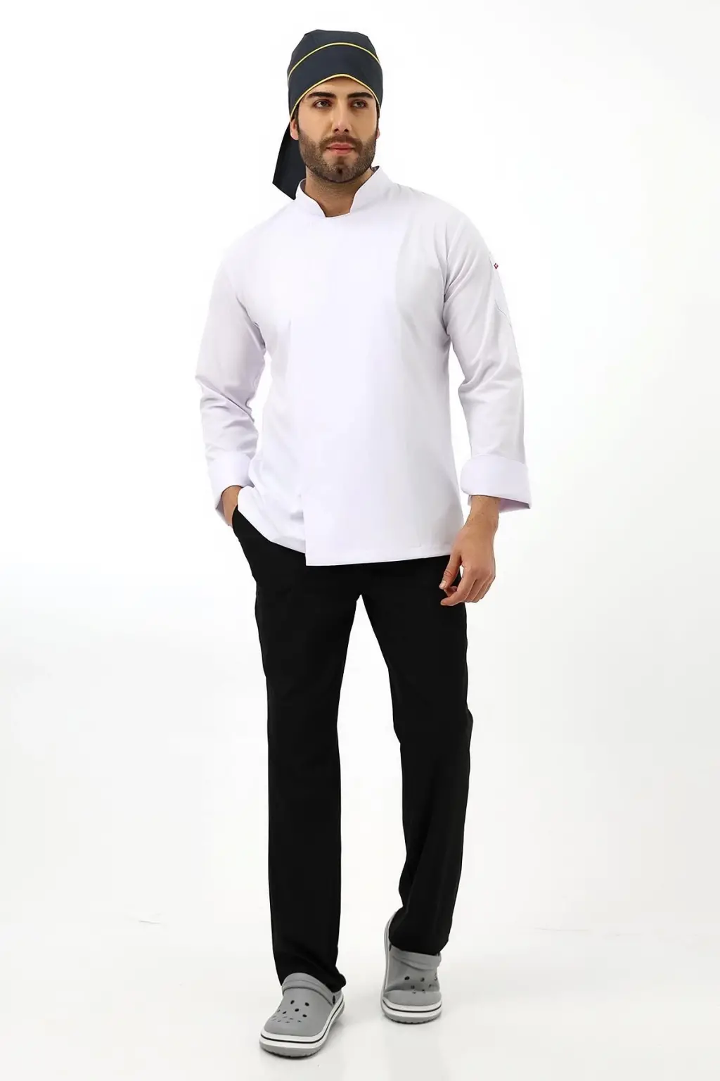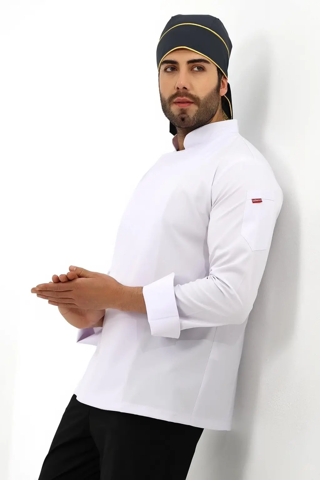 Erkek Likralı Aşçı Ceket - 6401 Beyaz Soft