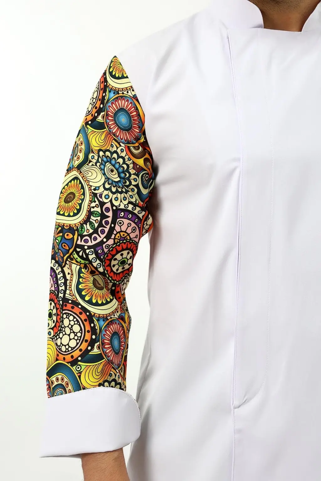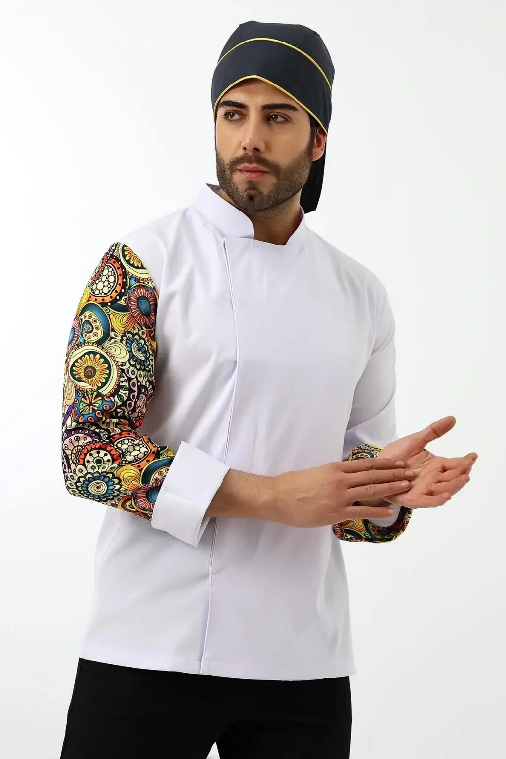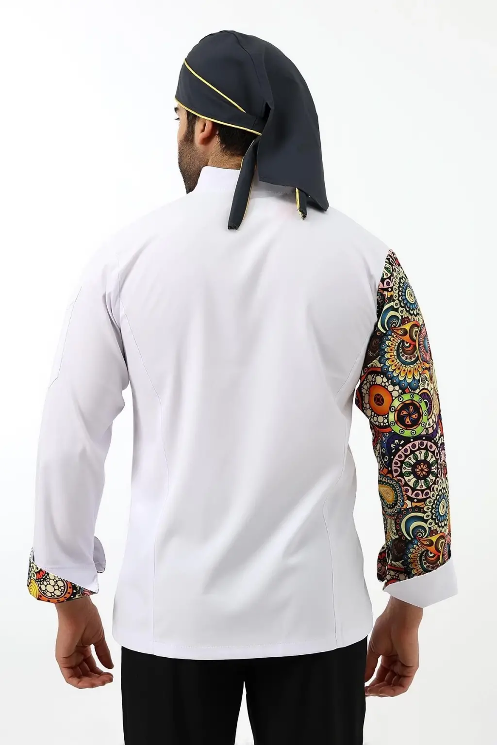 Erkek Likralı Kol Desenli Aşçı Ceket - 6401 Beyaz Renkli Daire