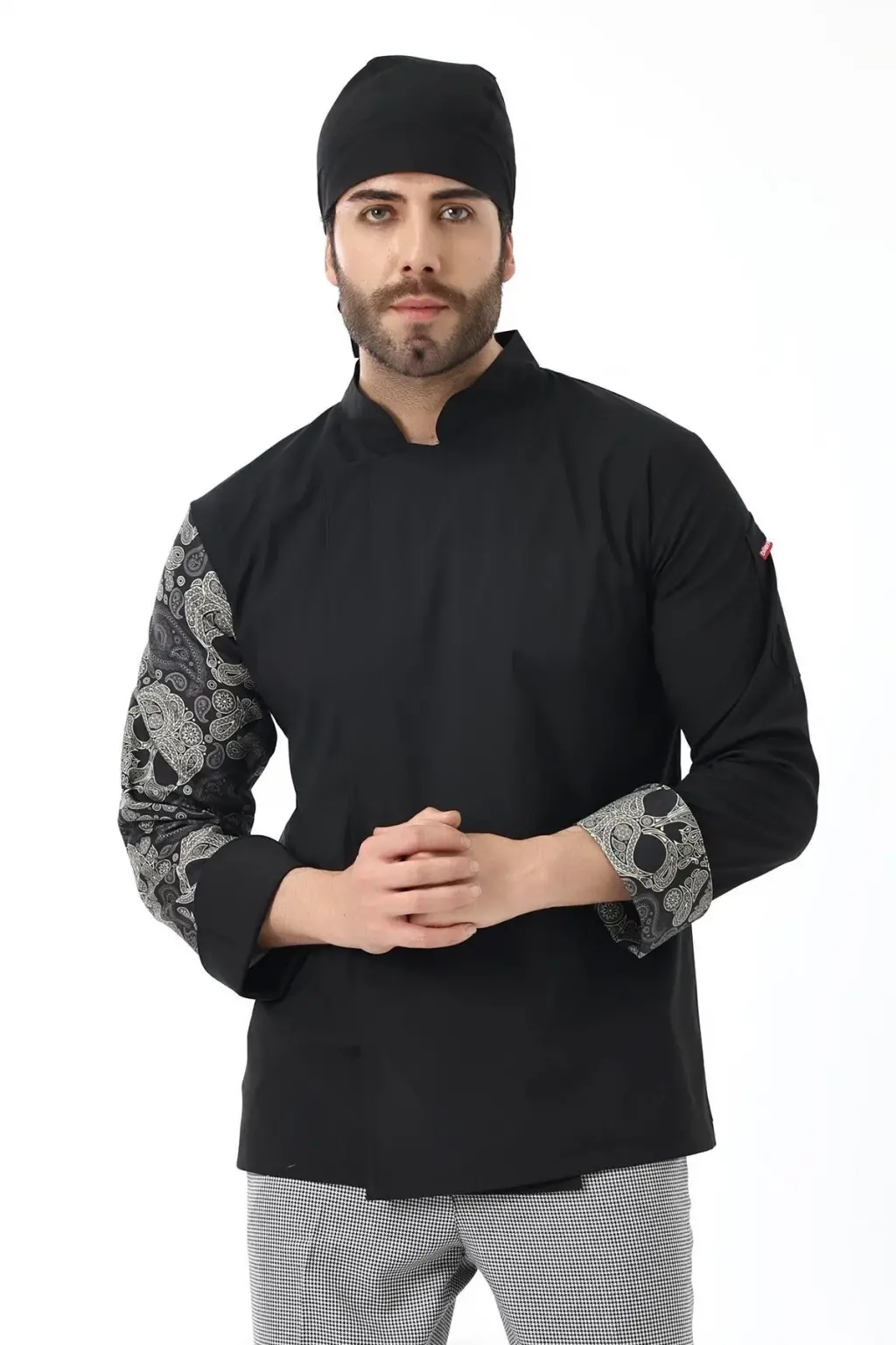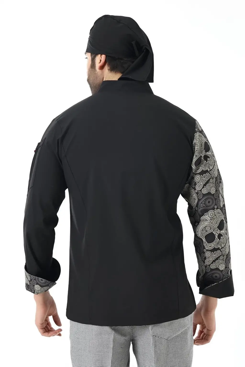 Erkek Likralı Kol Desenli Aşçı Ceket - 6403 Siyah Kuru Kafa