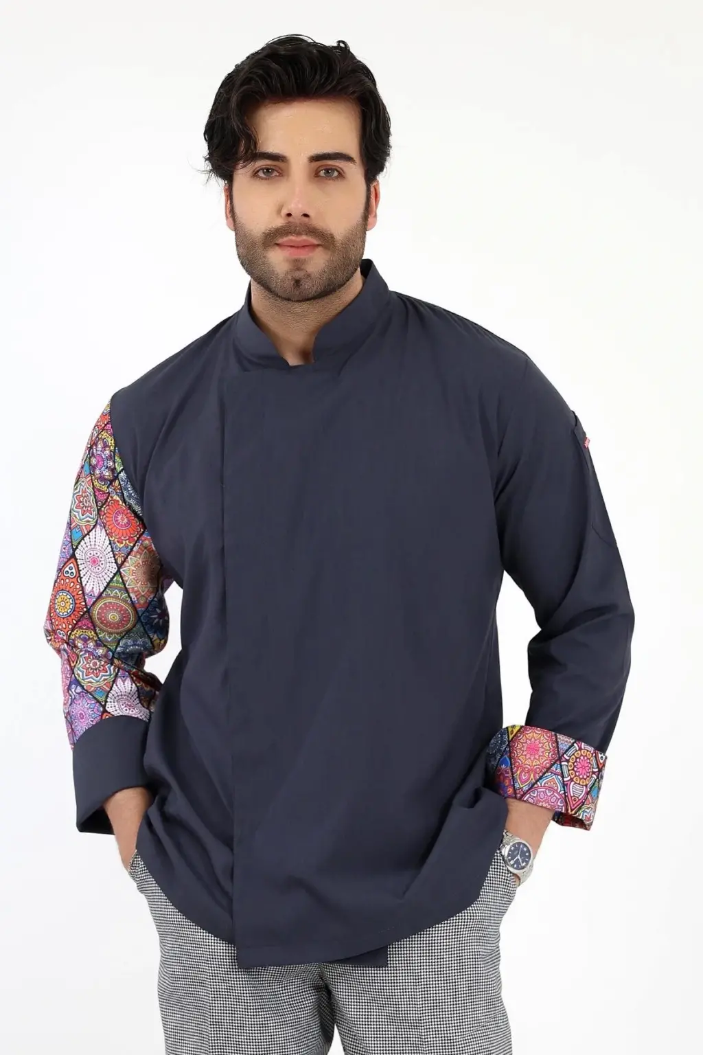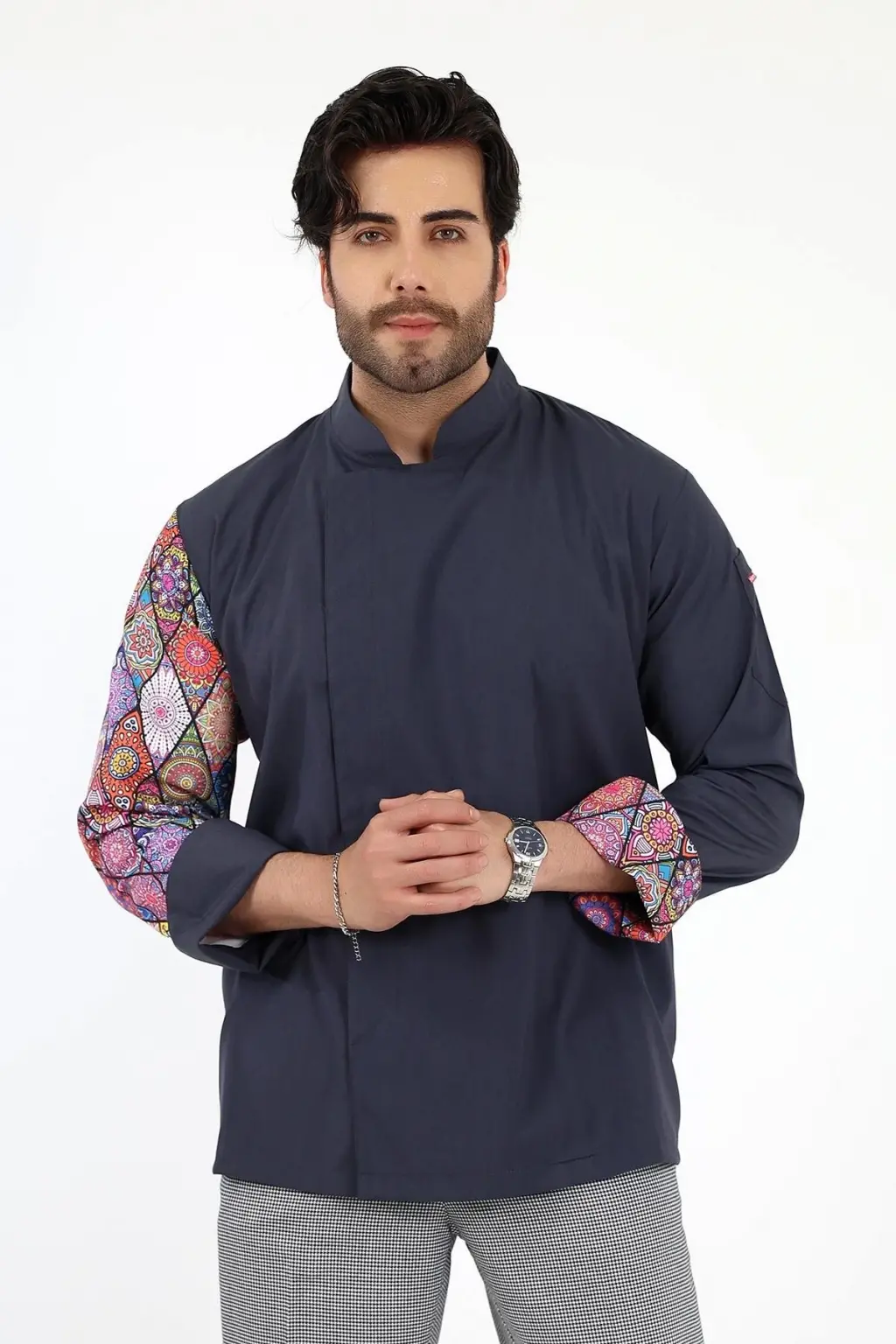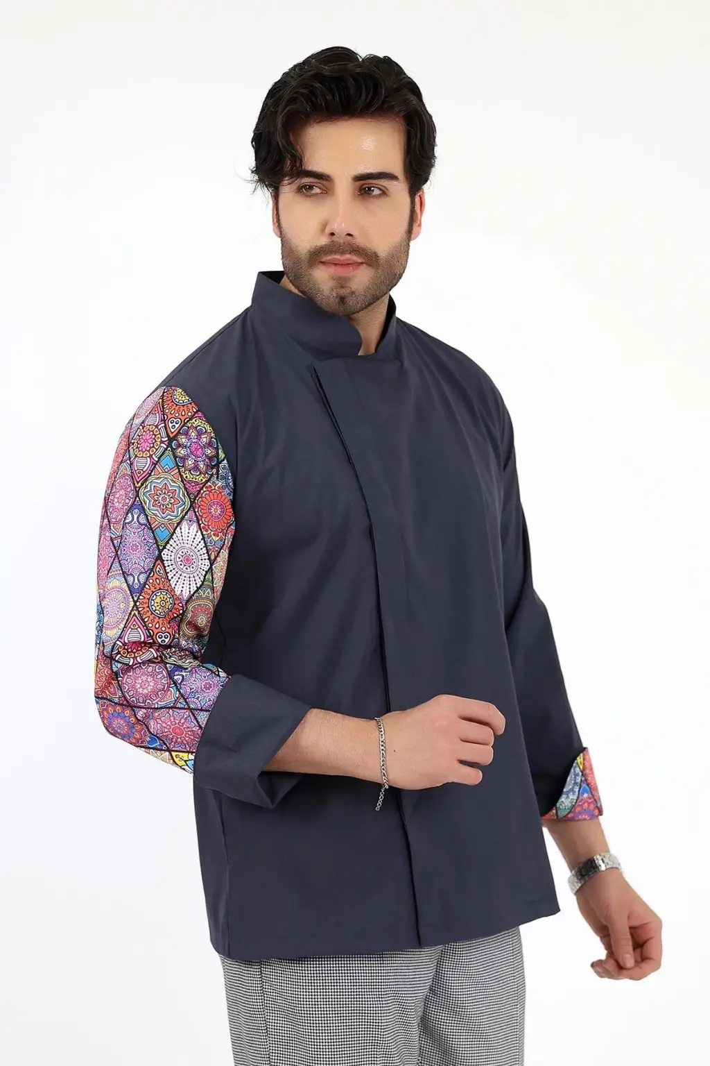 Erkek Likralı Kol Desenli Aşçı Ceket - 6417 Füme Çini
