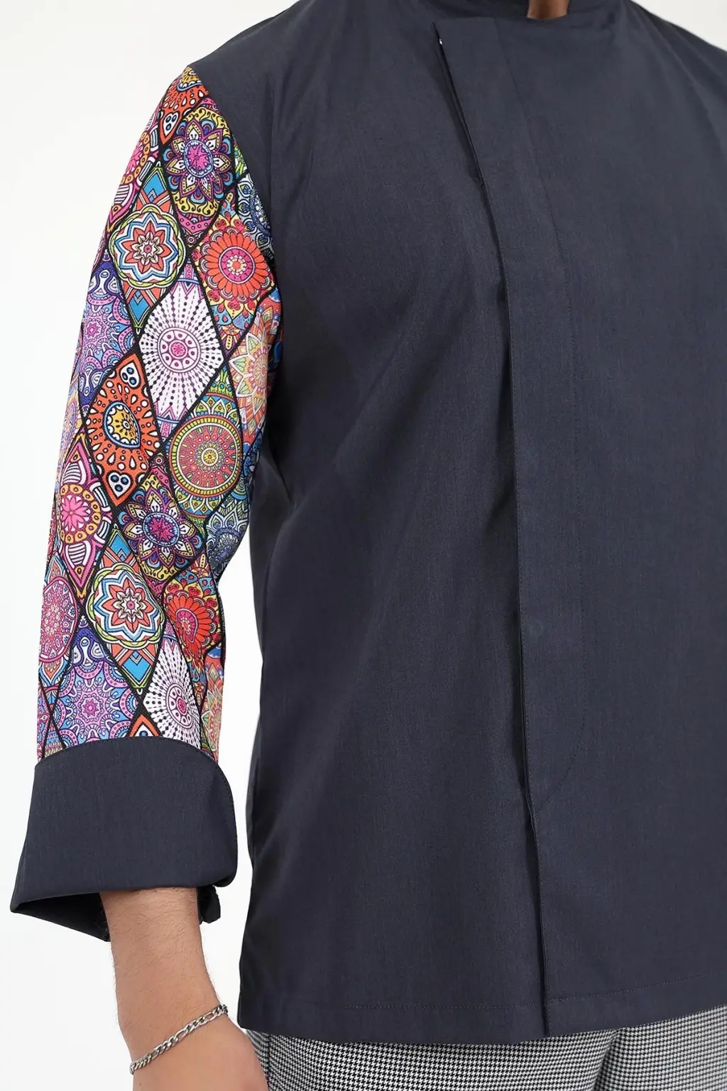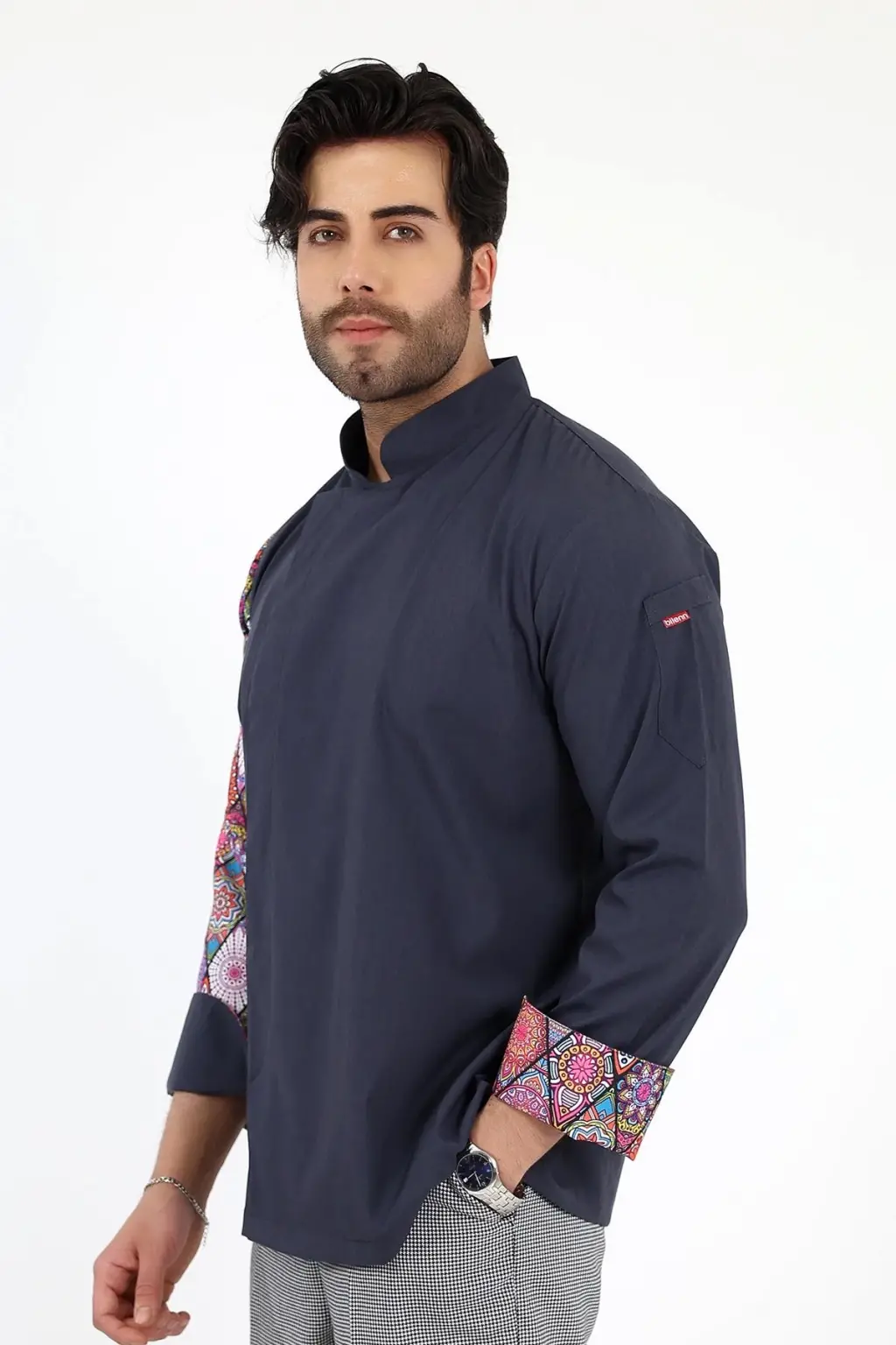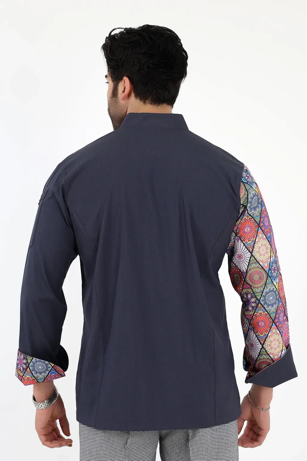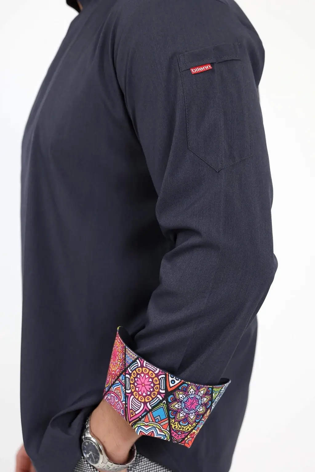 Erkek Likralı Kol Desenli Aşçı Ceket - 6417 Füme Çini