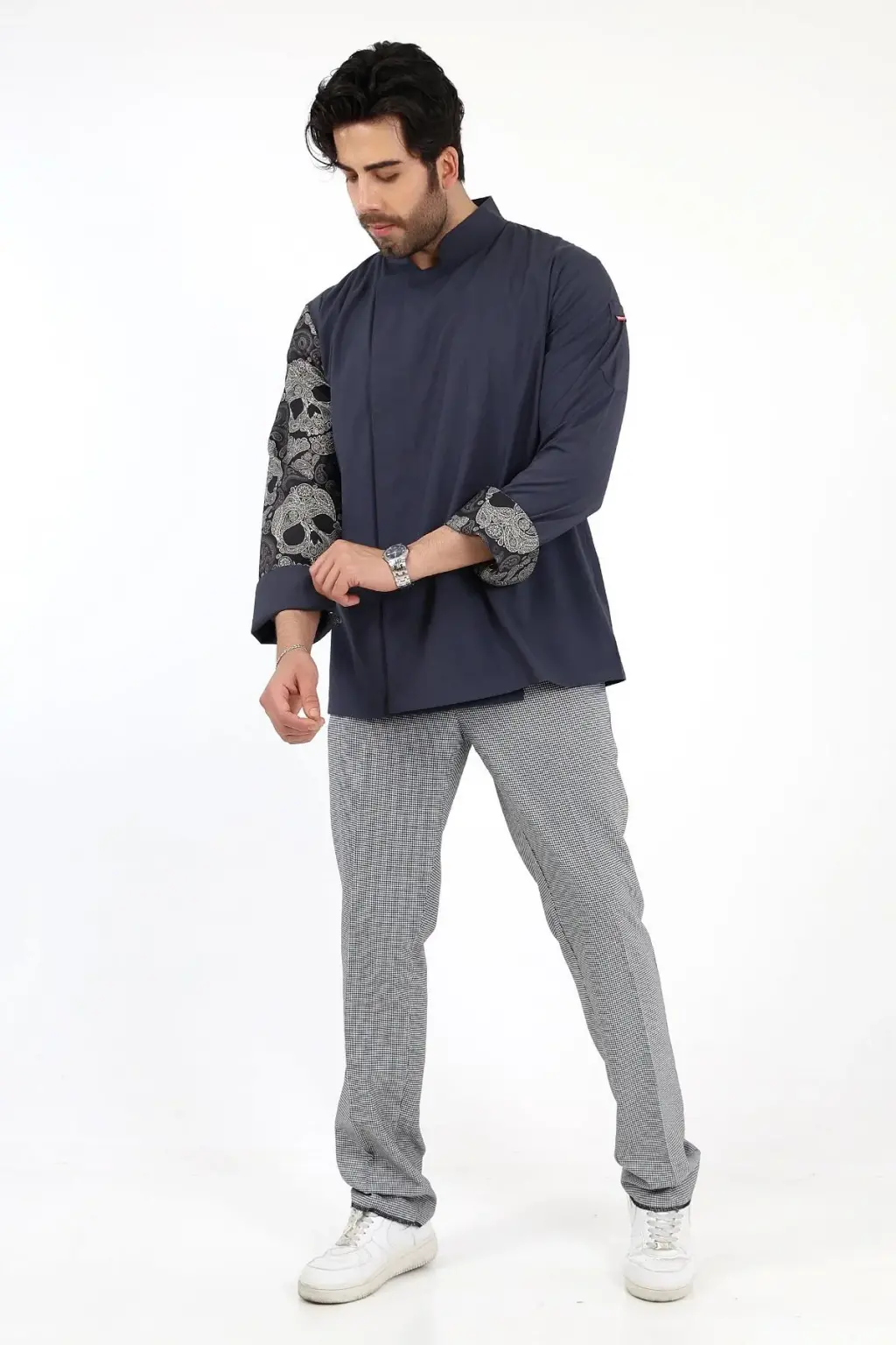 Erkek Likralı Kol Desenli Aşçı Ceket - 6417 Füme Kuru Kafa