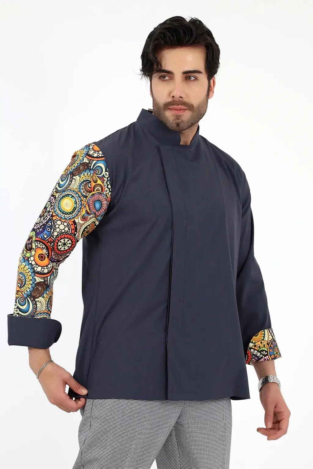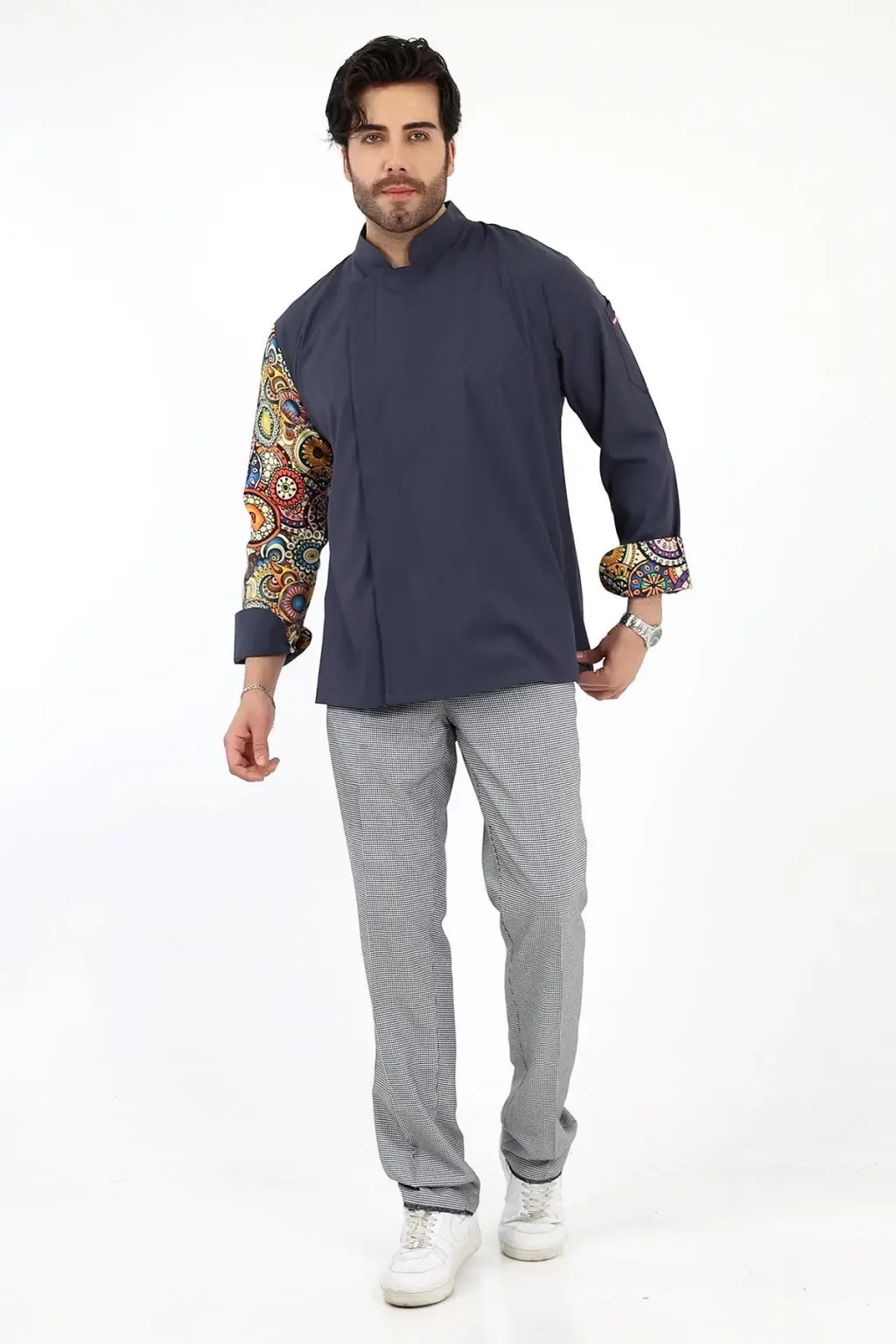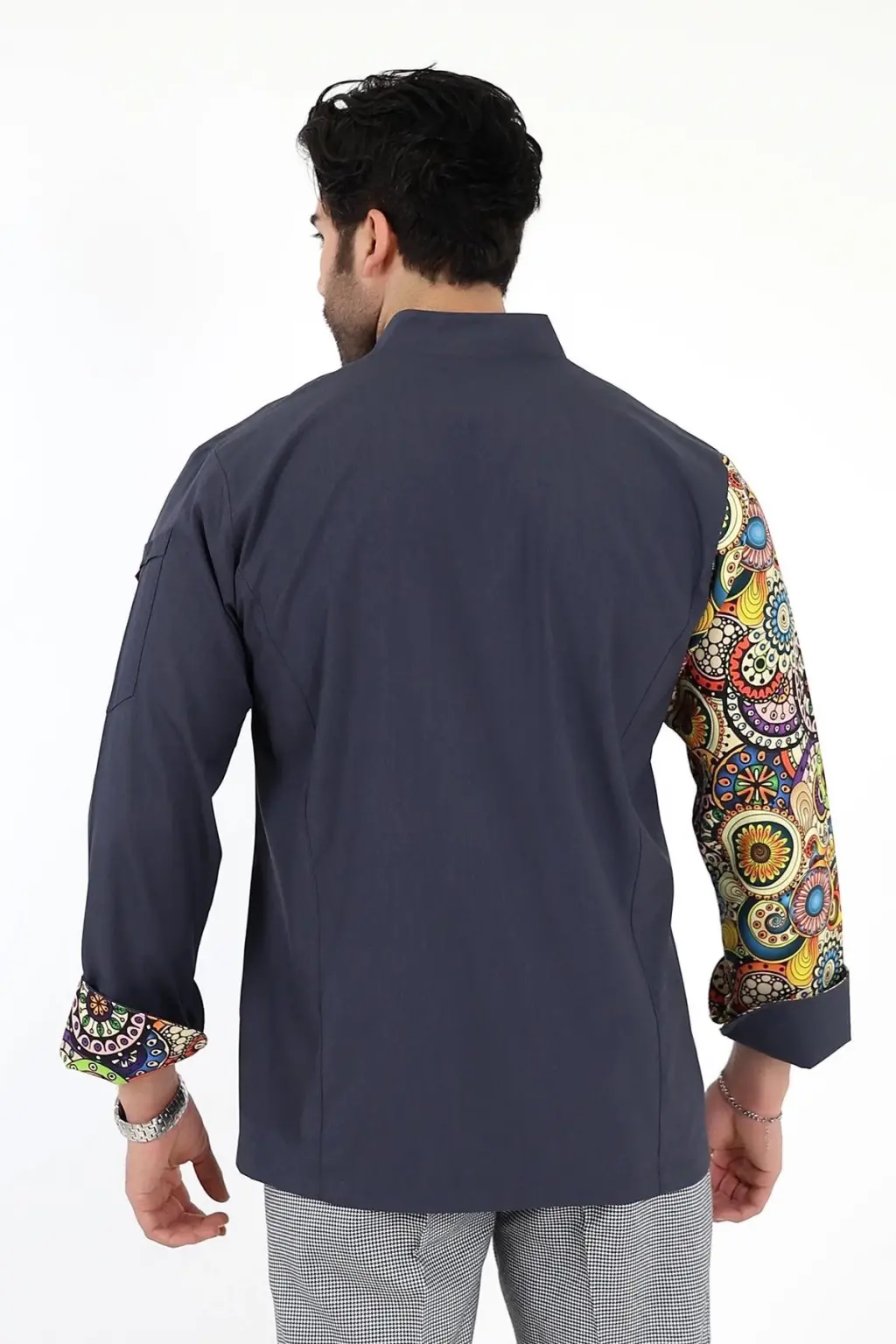 Erkek Likralı Kol Desenli Aşçı Ceket - 6417 Füme Renkli Daire