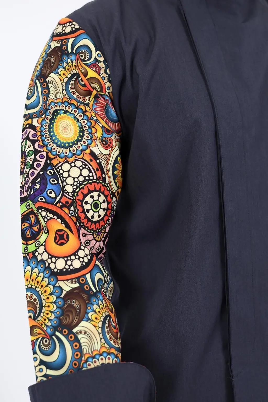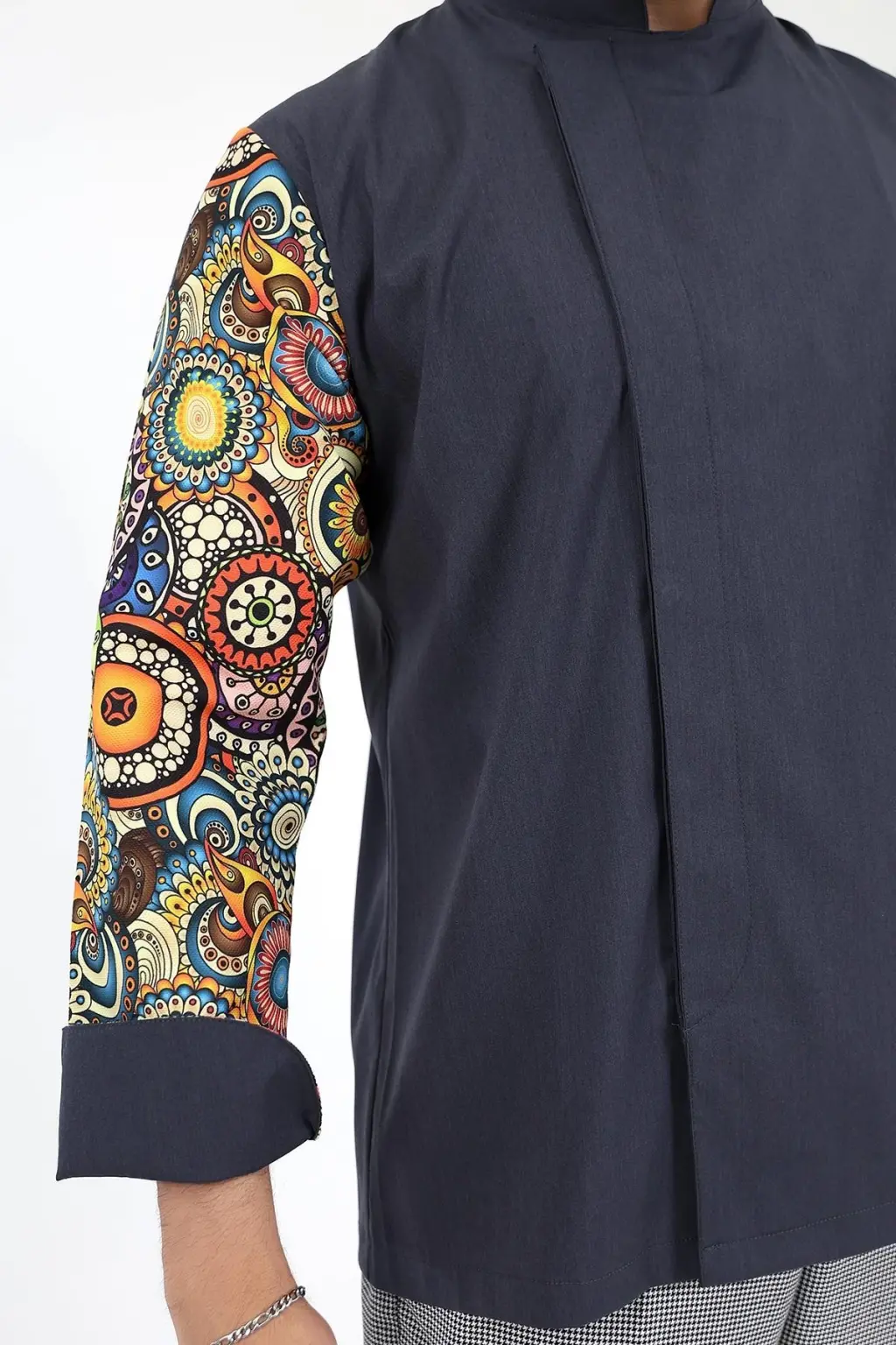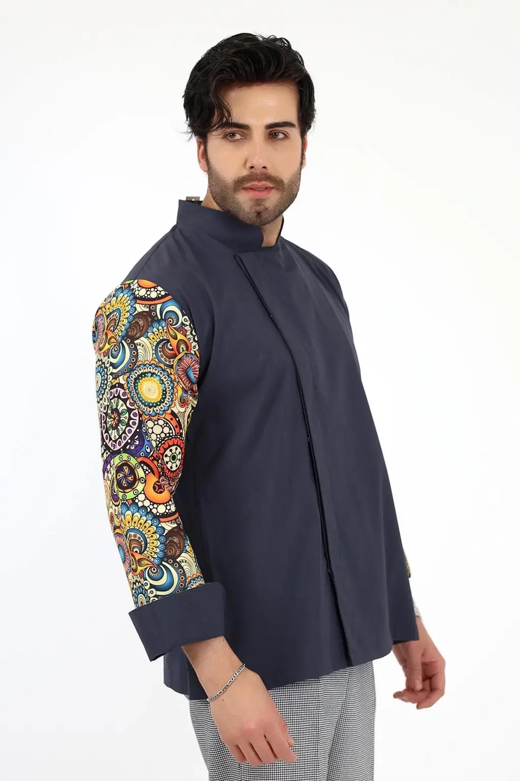 Erkek Likralı Kol Desenli Aşçı Ceket - 6417 Füme Renkli Daire