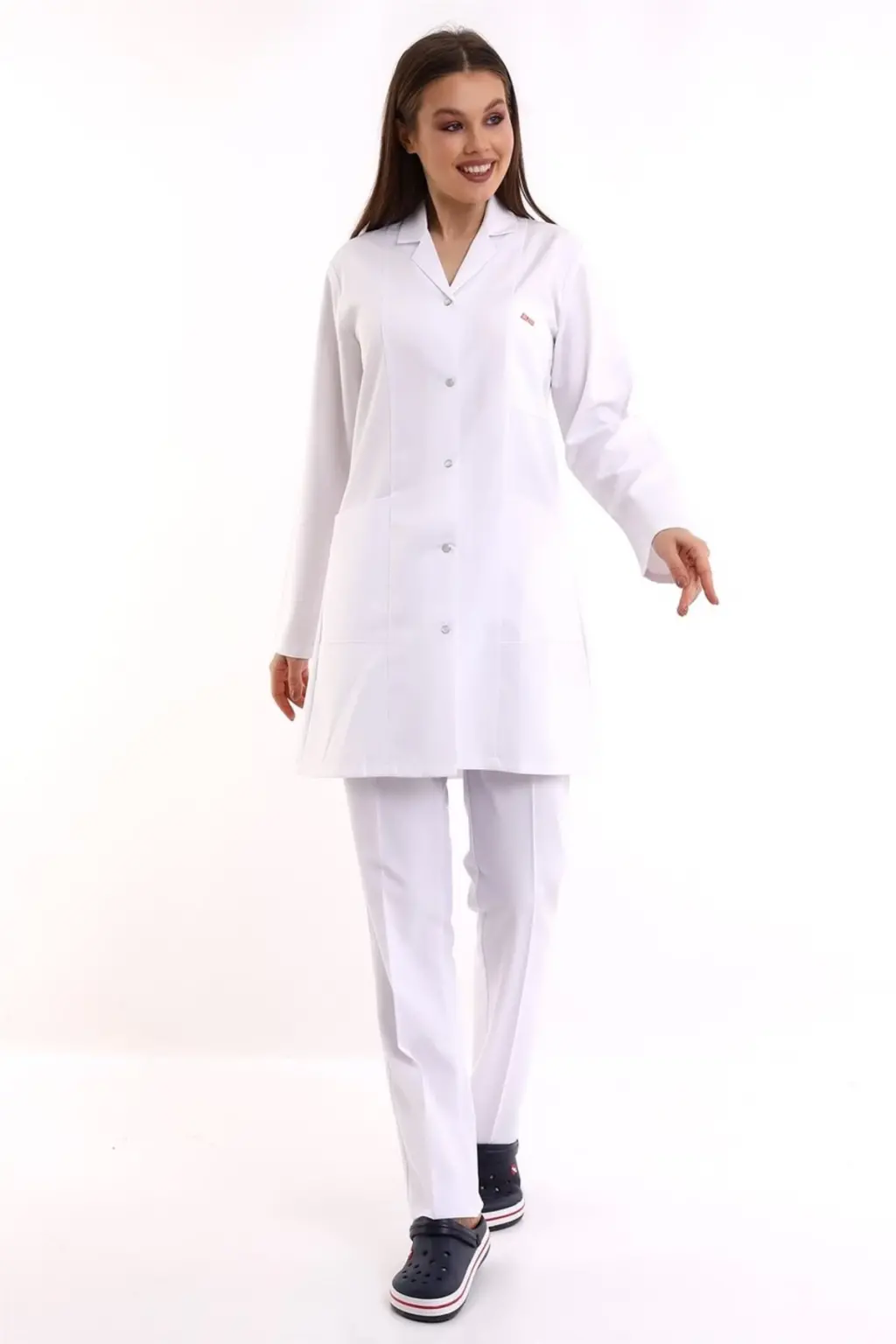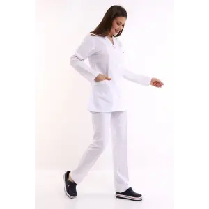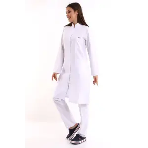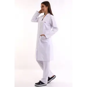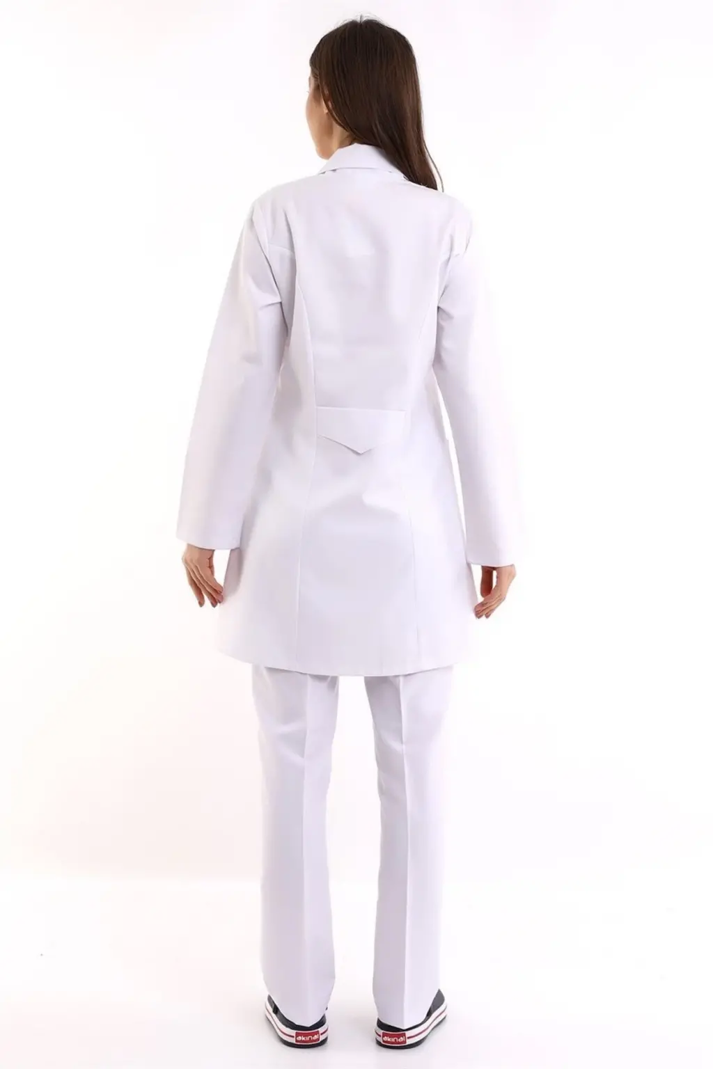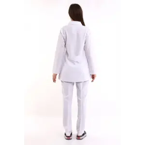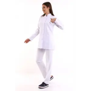 Kadın Araboy Ceket Yaka Gabardin Önlük - Beyaz