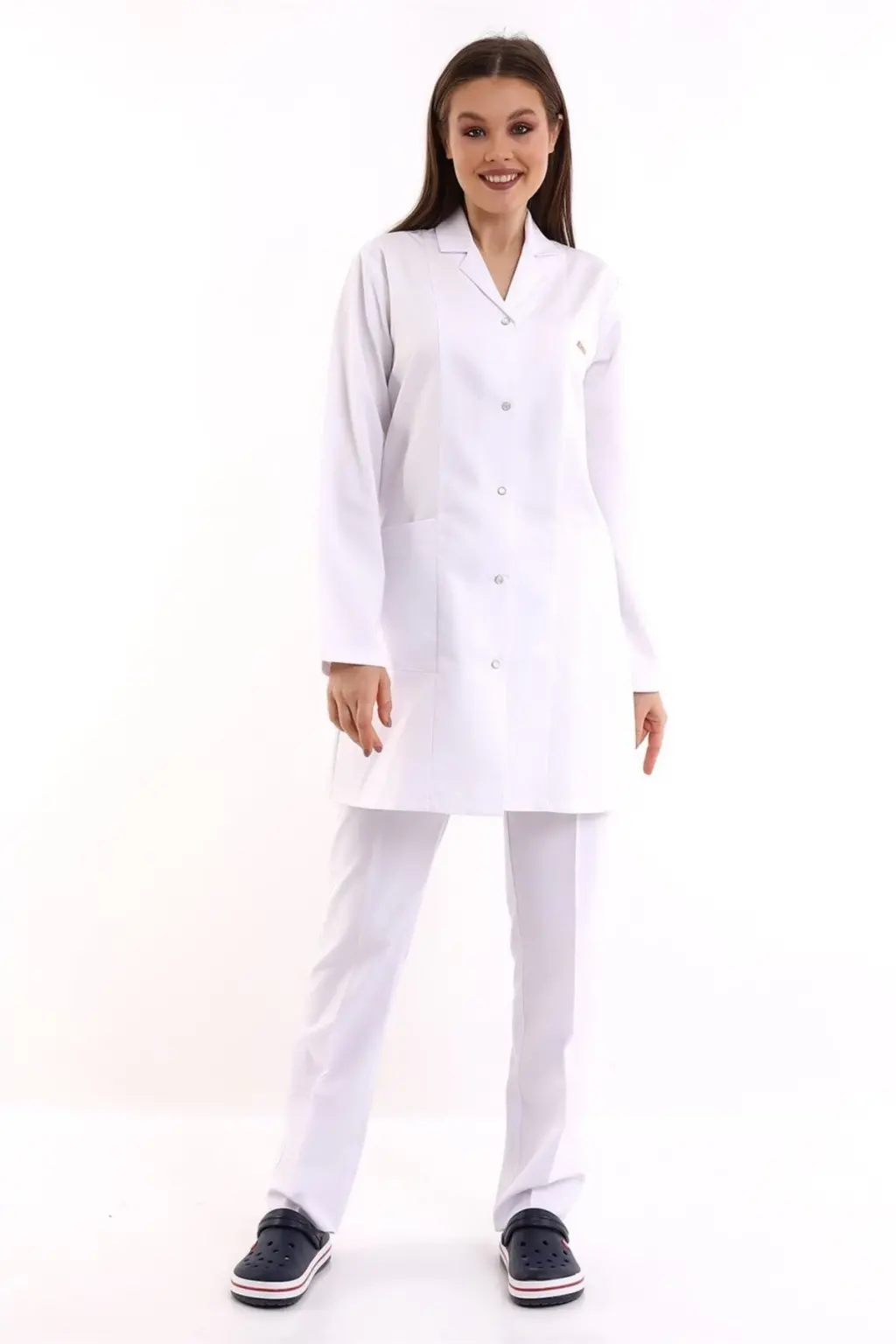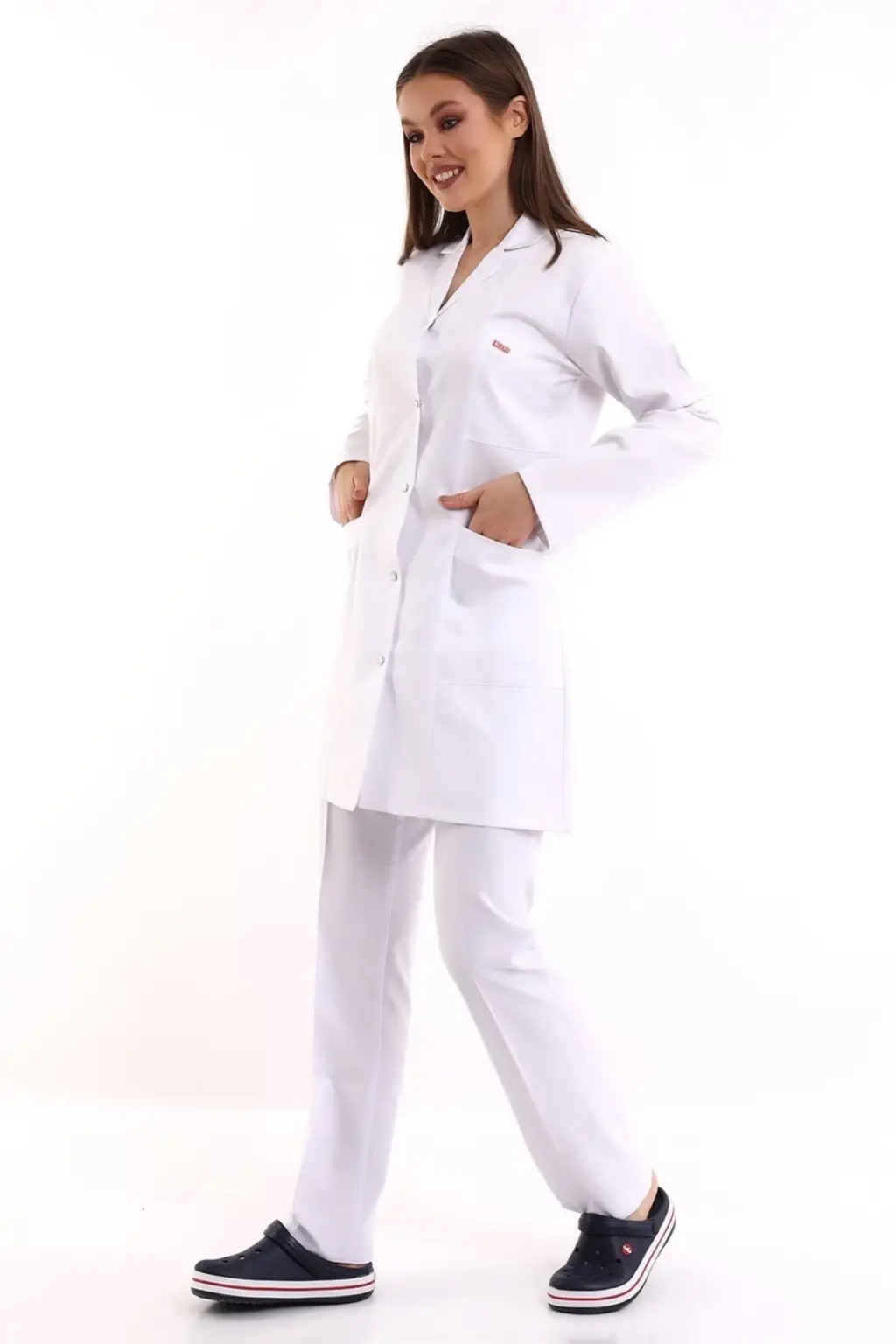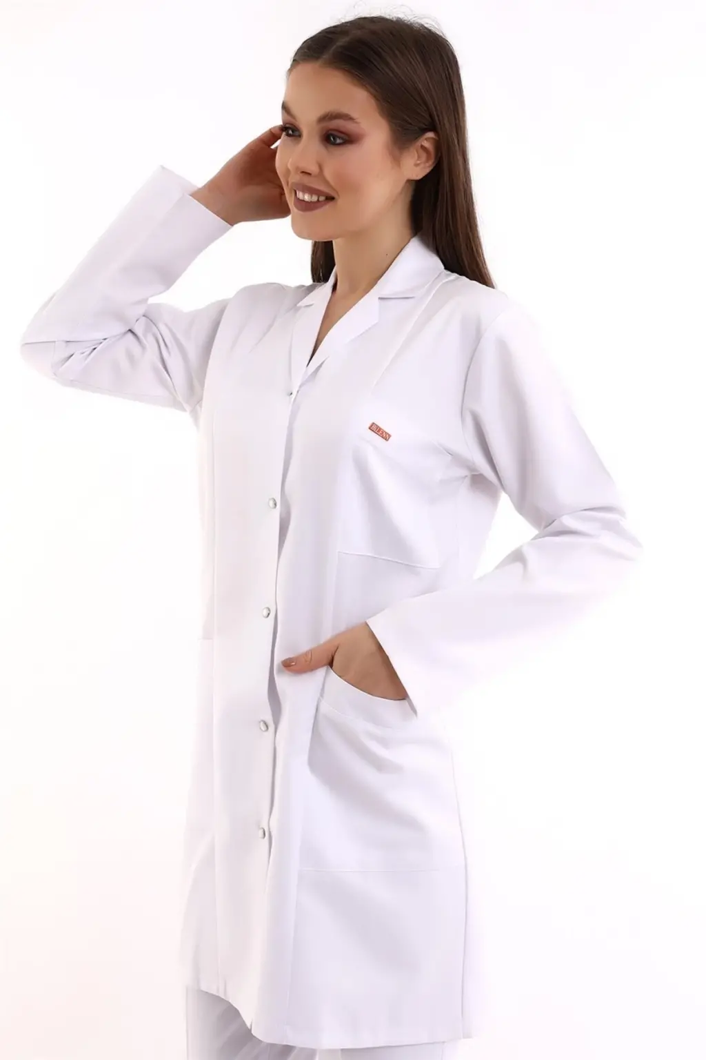 Kadın Araboy Ceket Yaka Gabardin Önlük - Beyaz