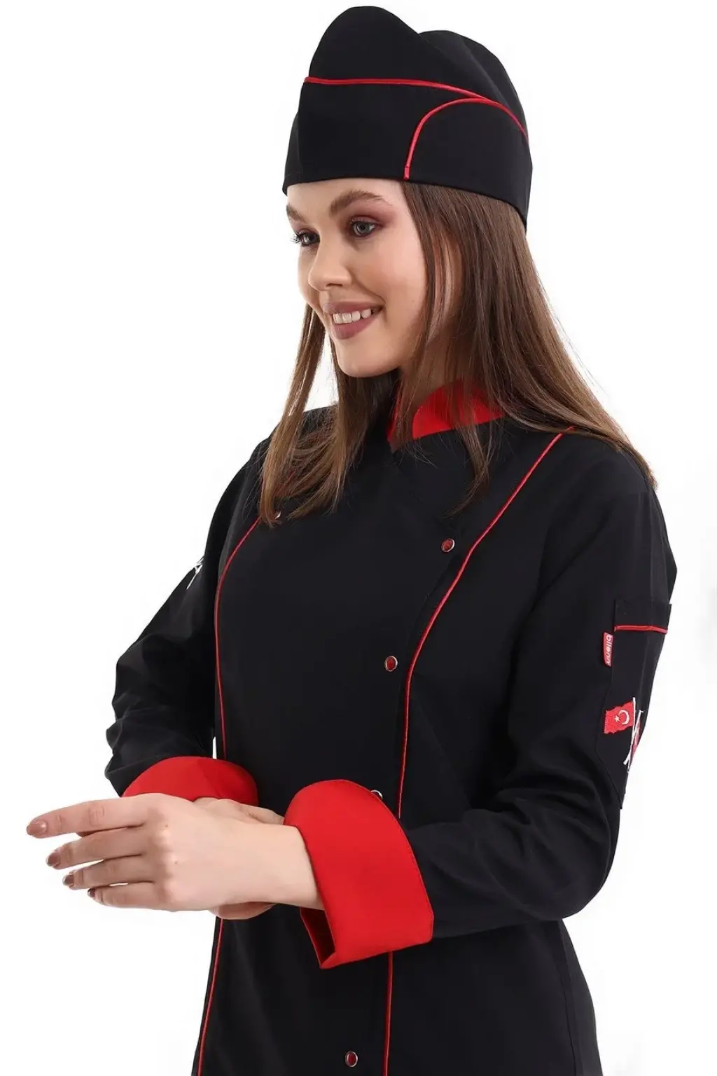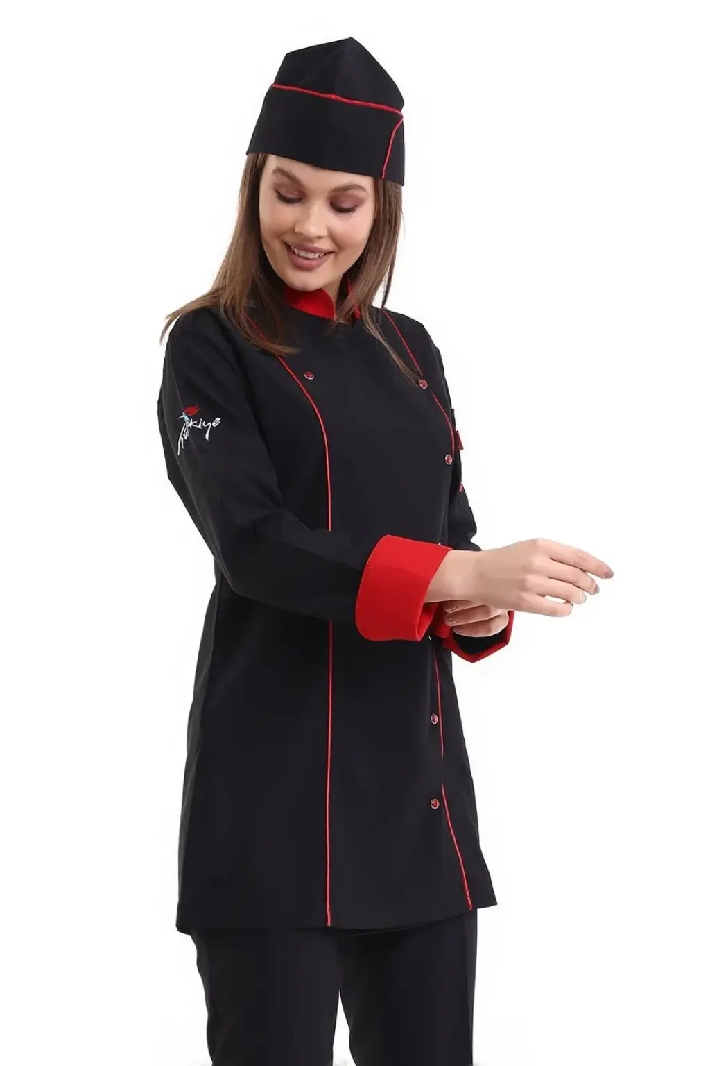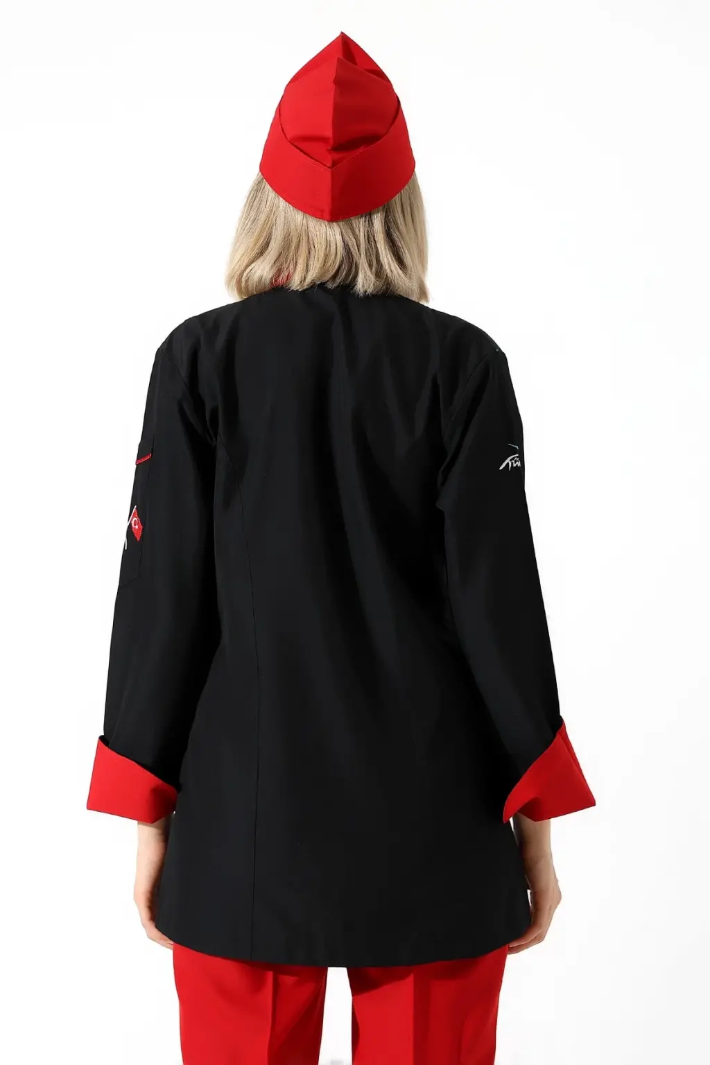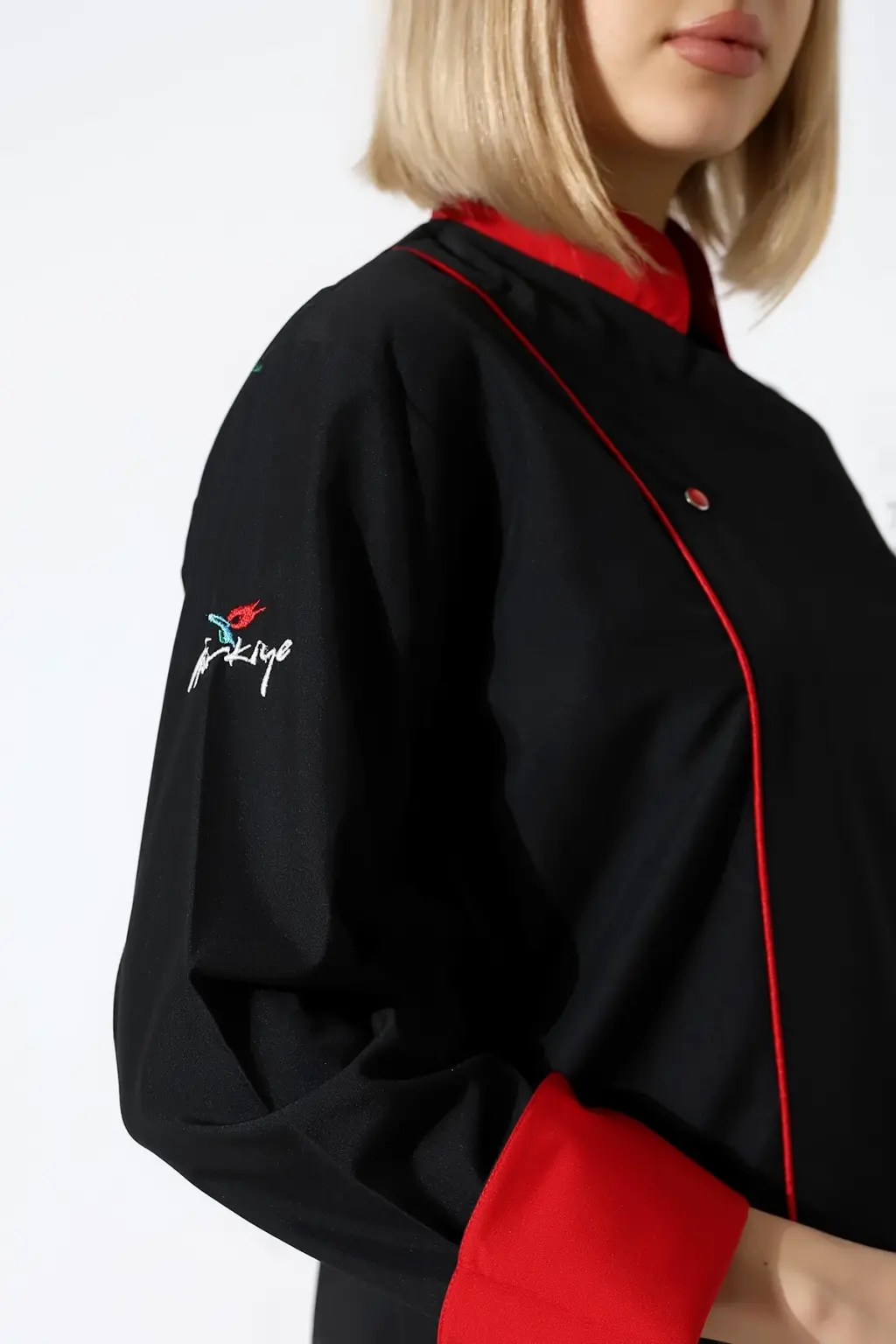 Kadın Aşçı Ceket 01 - Siyah Kırmızı Biye