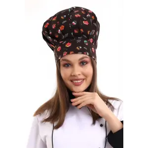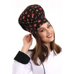 Aşçı Kayık Kep - 3007 Beyaz Kaşık Desenli