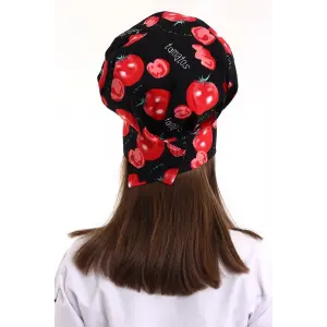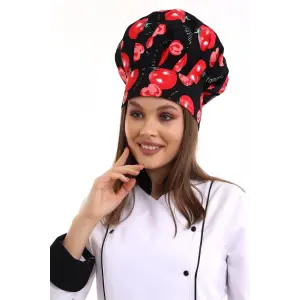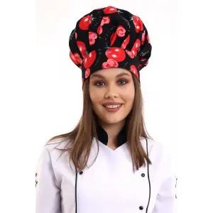 Kırmızı Siyah Çizgi Desenli Aşçı Mantar Şapka - Unisex