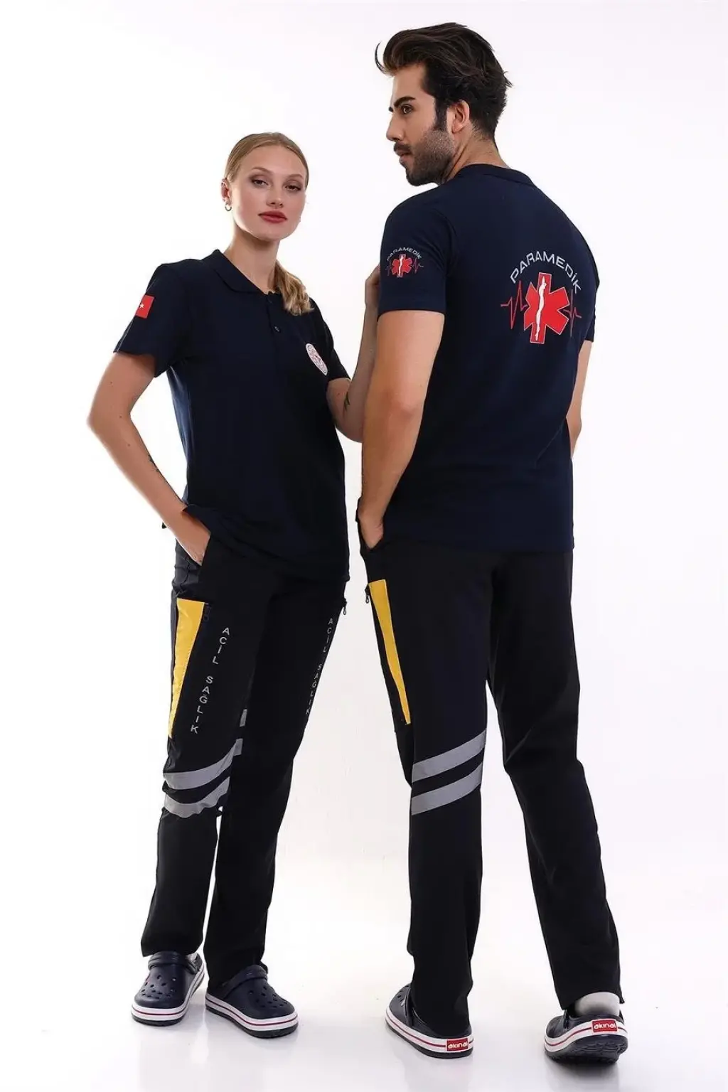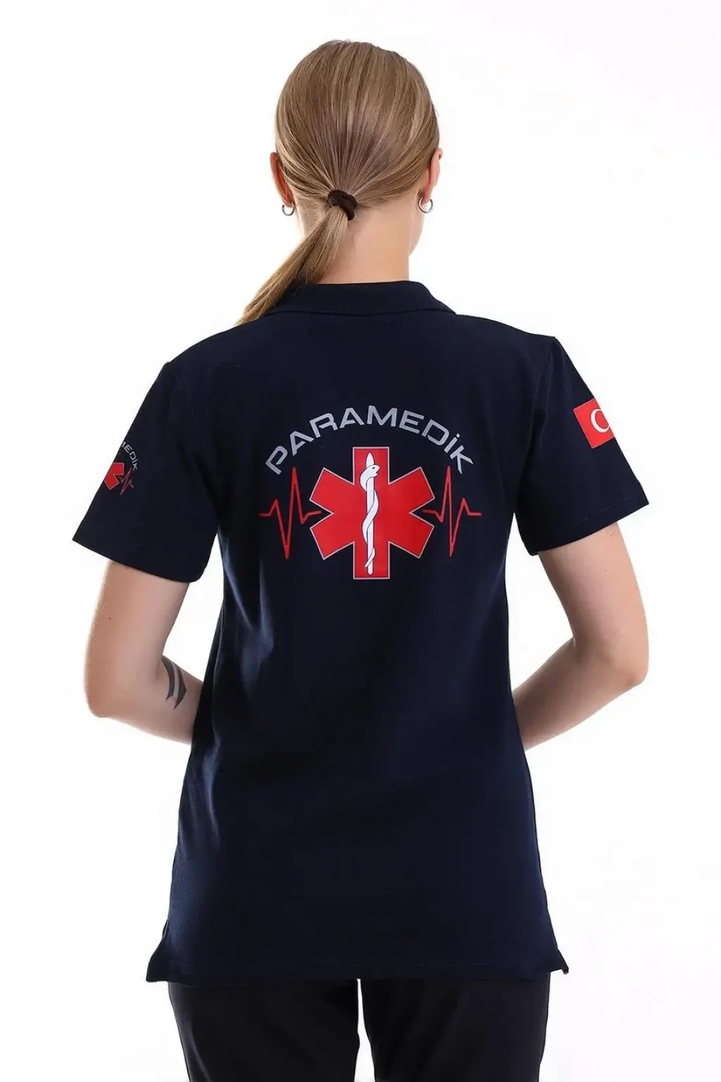 Paramedik Yakalı Unisex Tshirt Kısa Kol - Lacivert