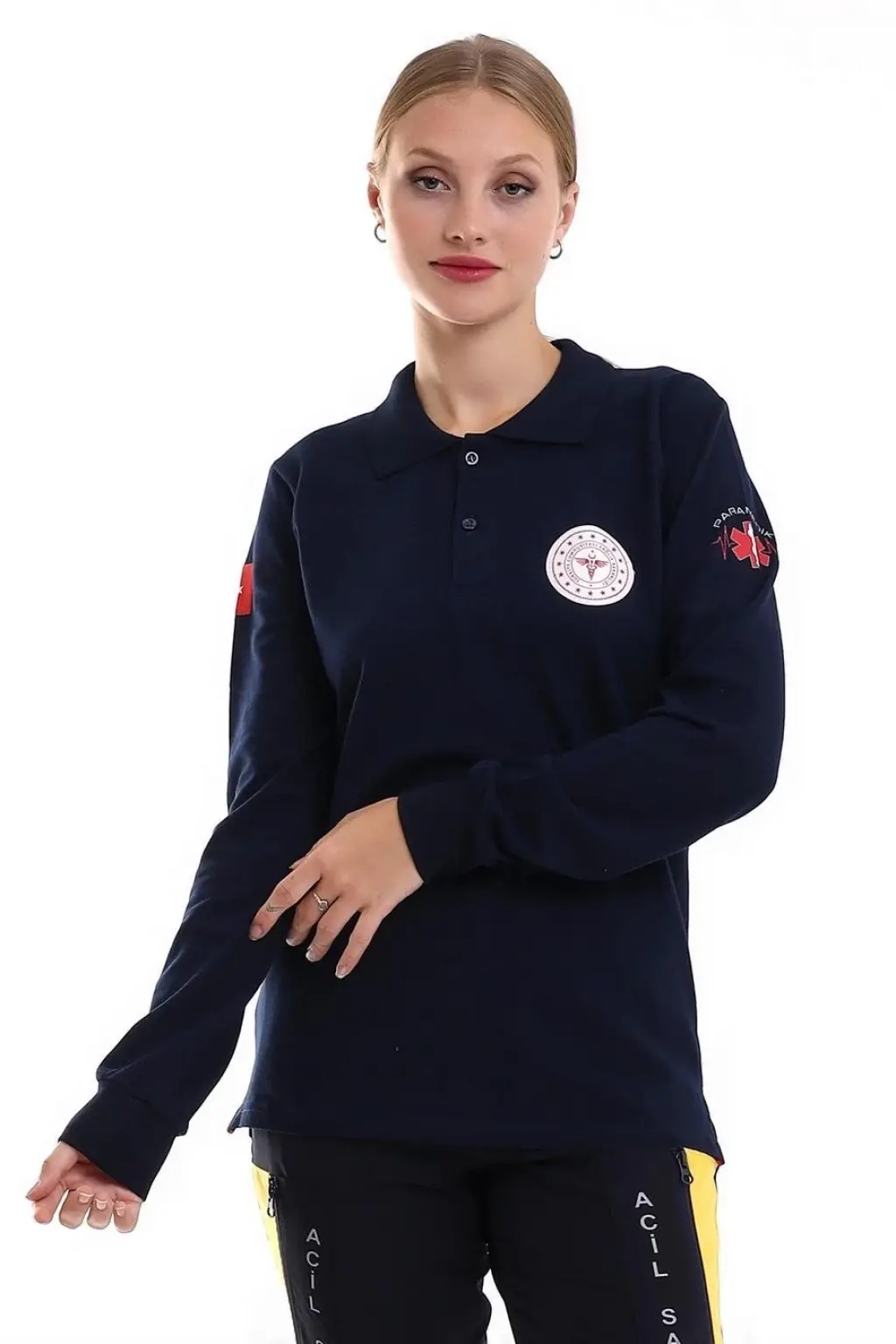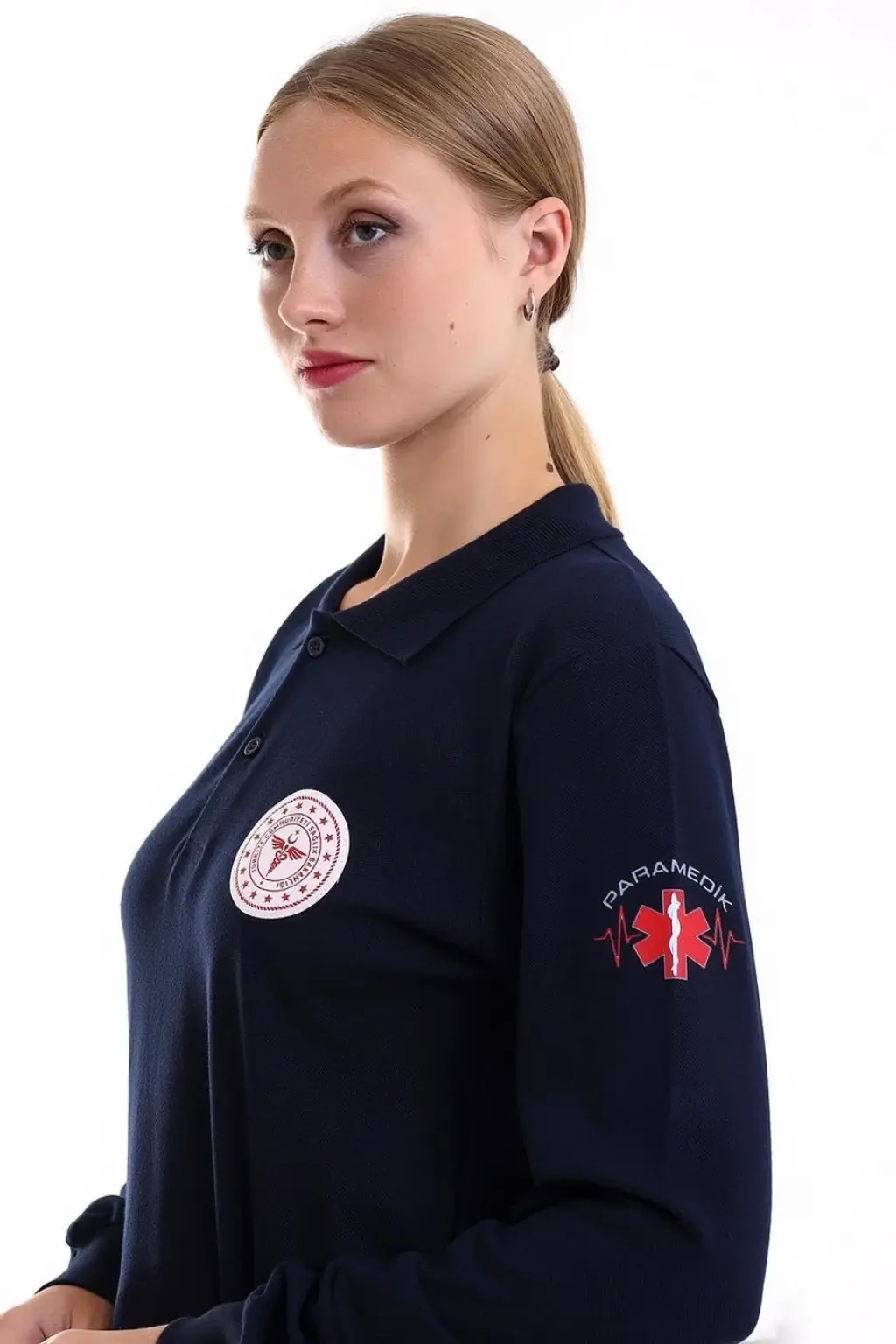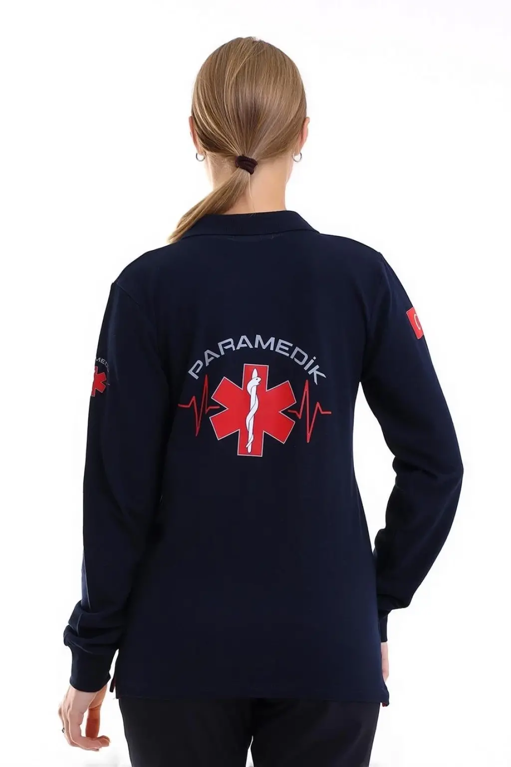 Paramedik Yakalı Unisex Tshirt Uzun Kol - Lacivert