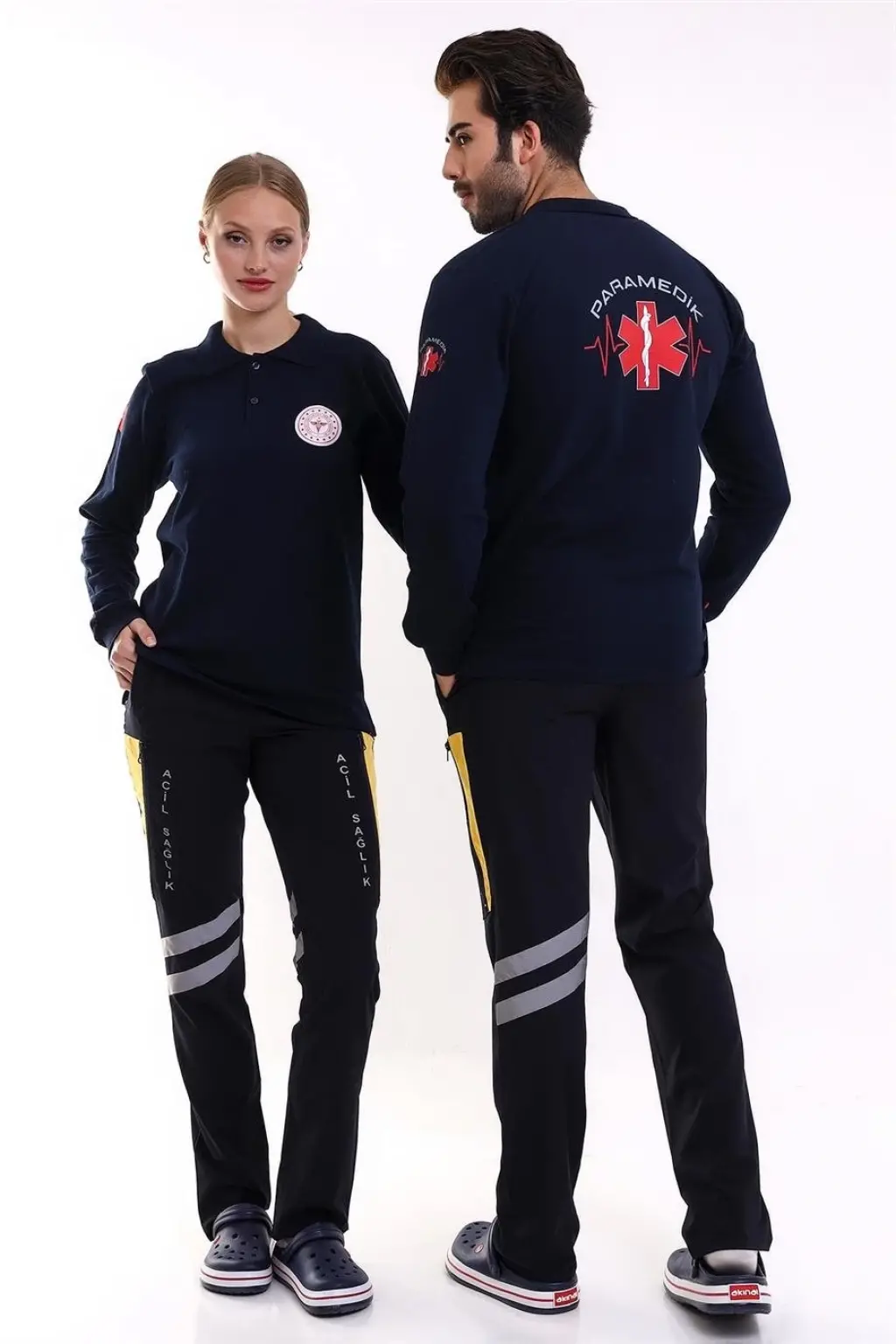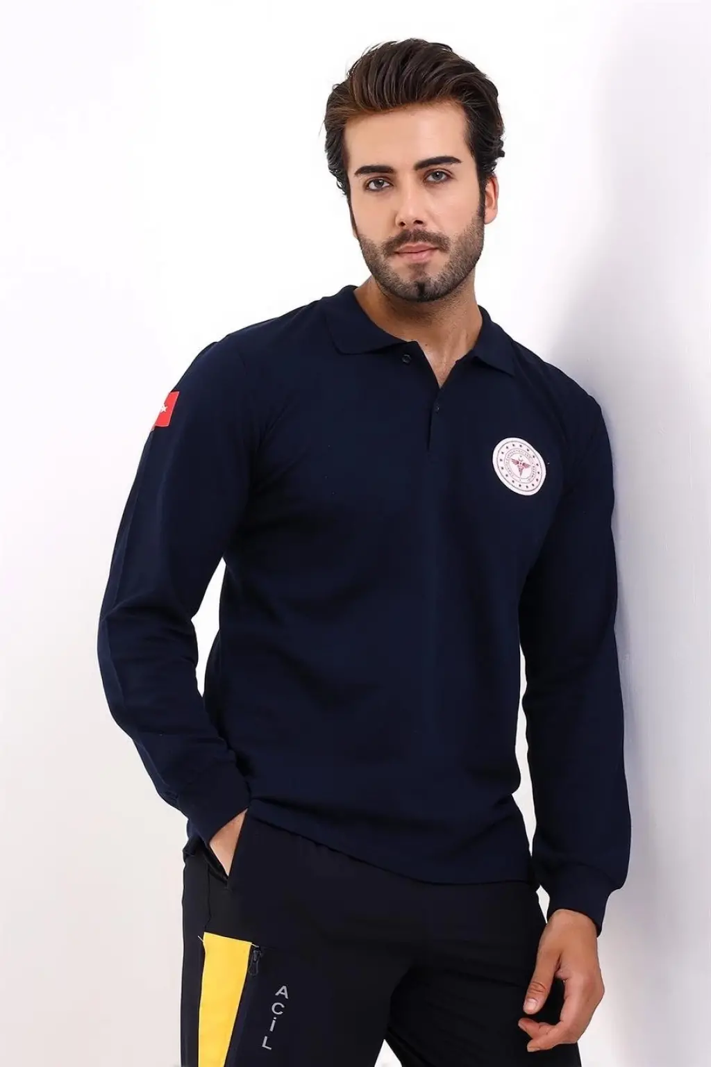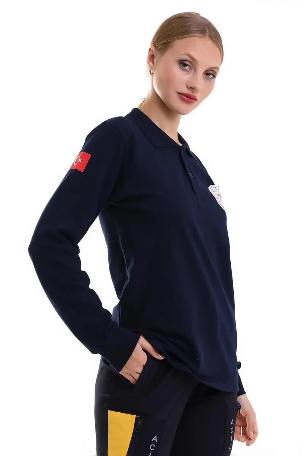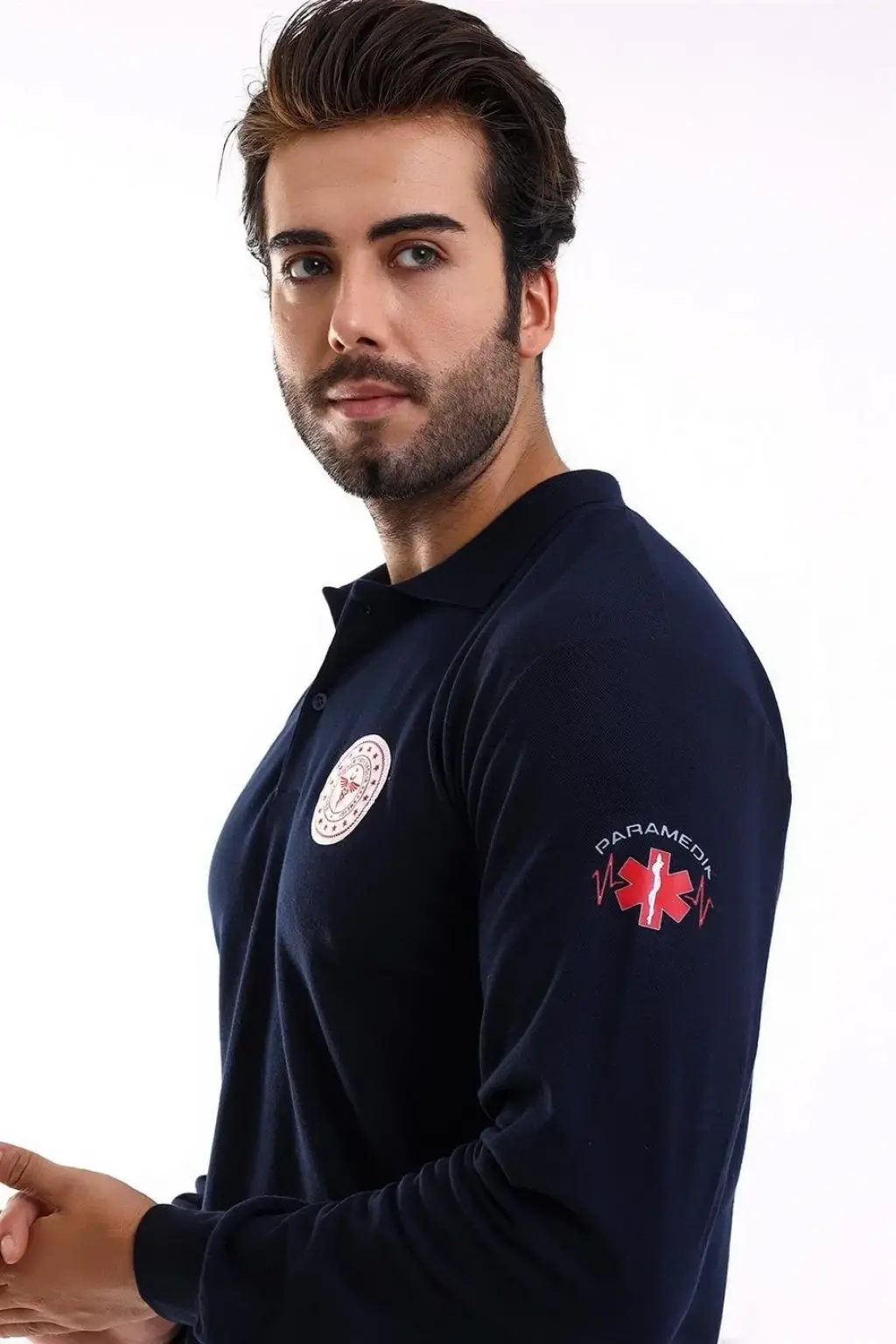 Paramedik Yakalı Unisex Tshirt Uzun Kol - Lacivert