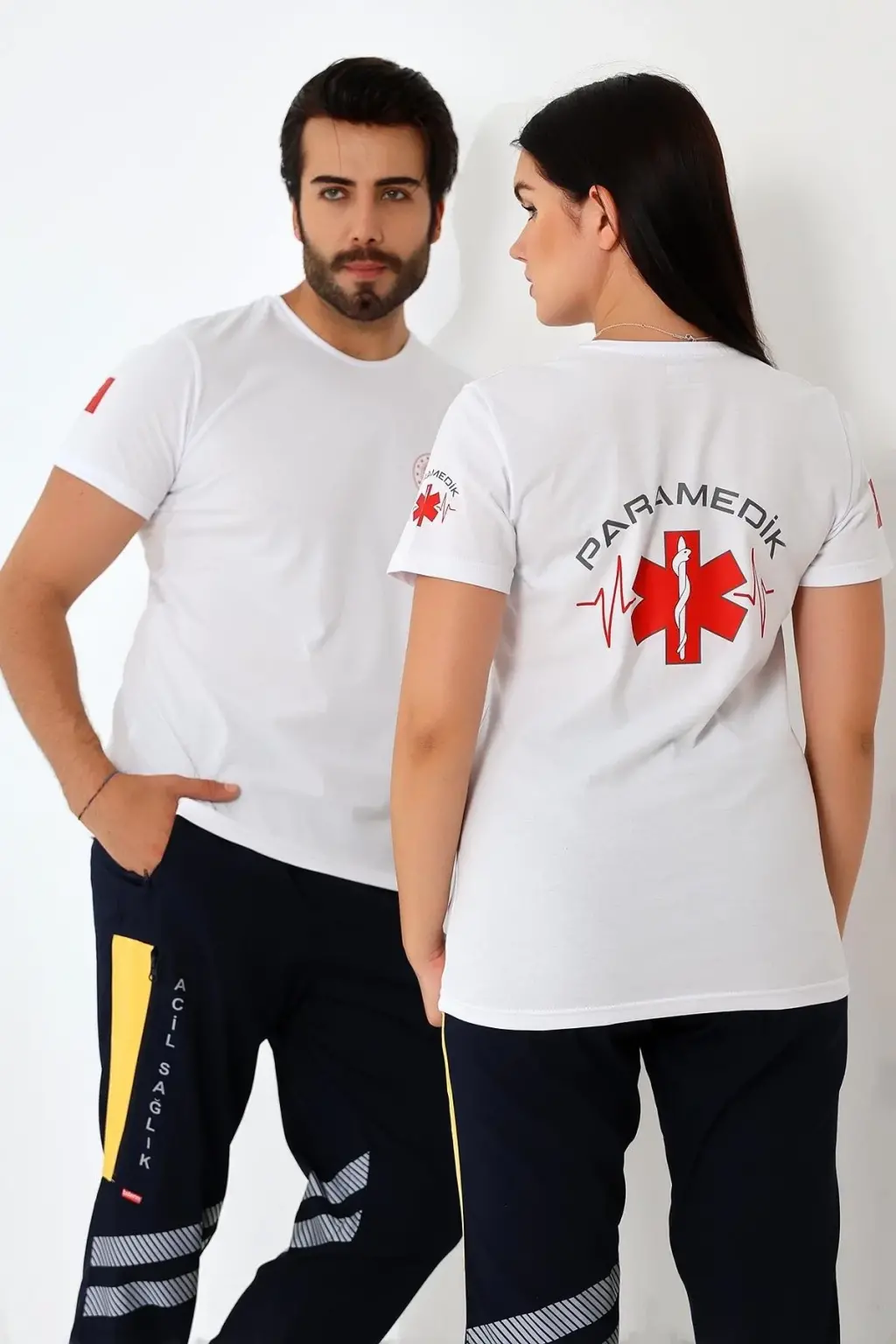 Paramedik Yuvarlak Yaka Penye Kısa Kol Tshirt - Beyaz