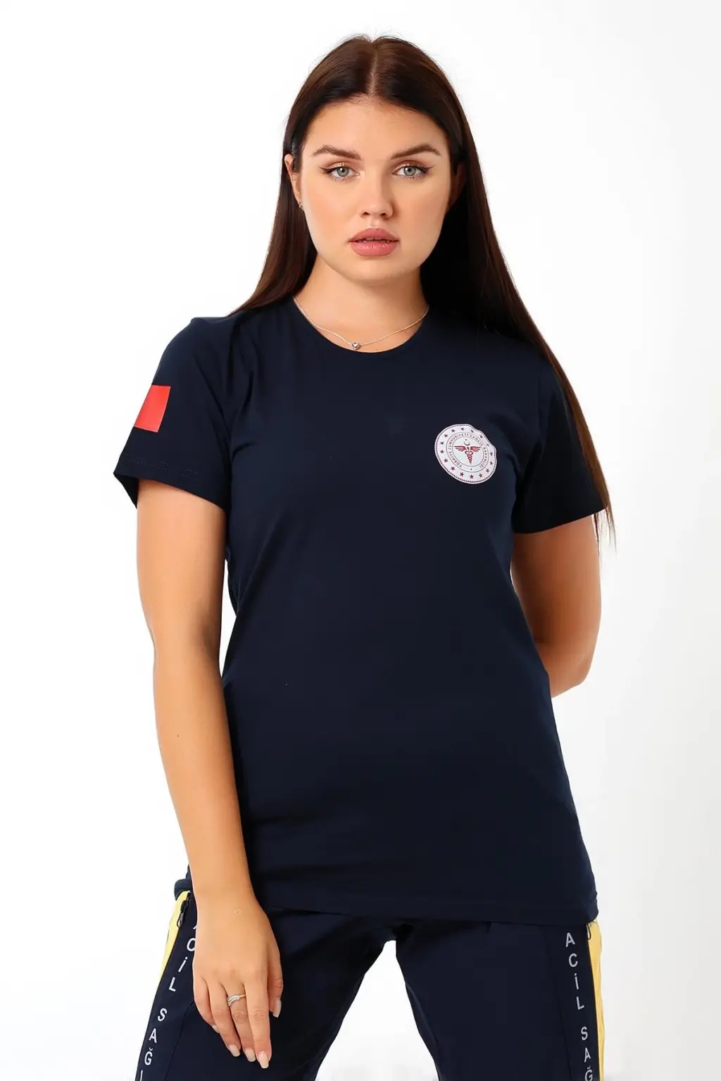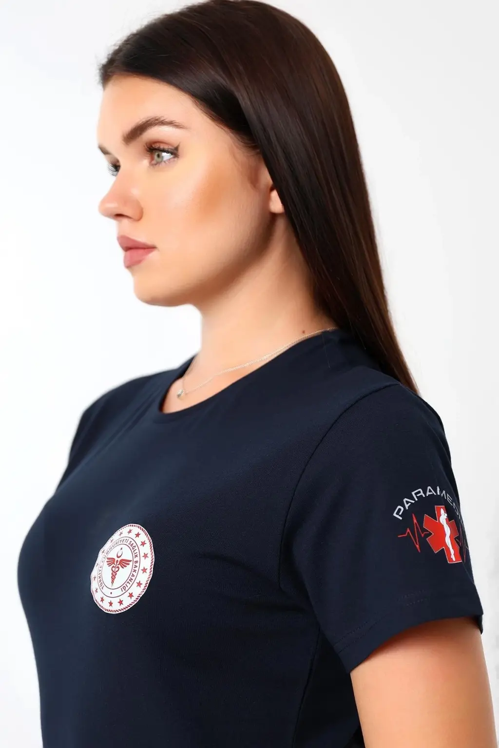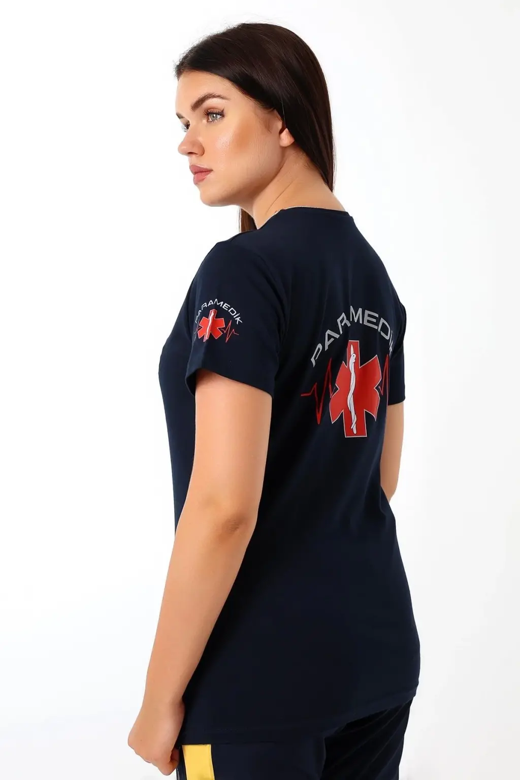 Paramedik Yuvarlak Yaka Penye Kısa Kol Tshirt - Lacivert
