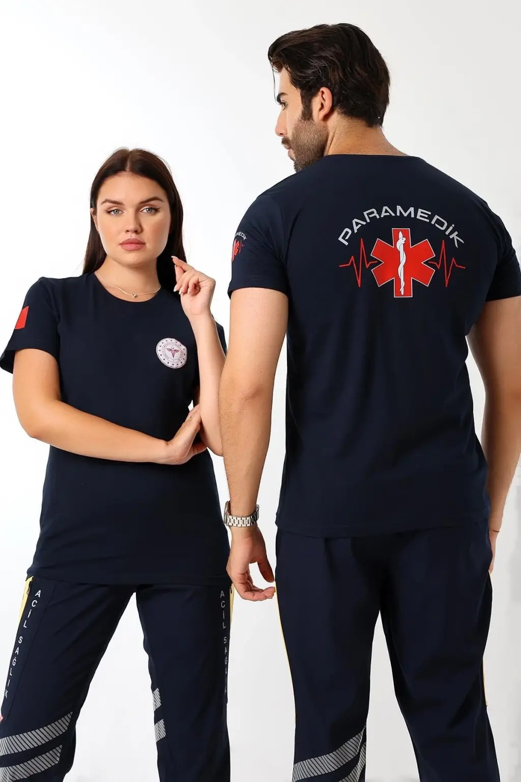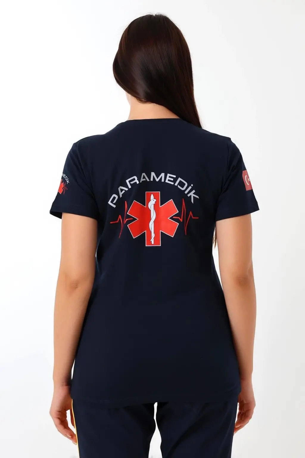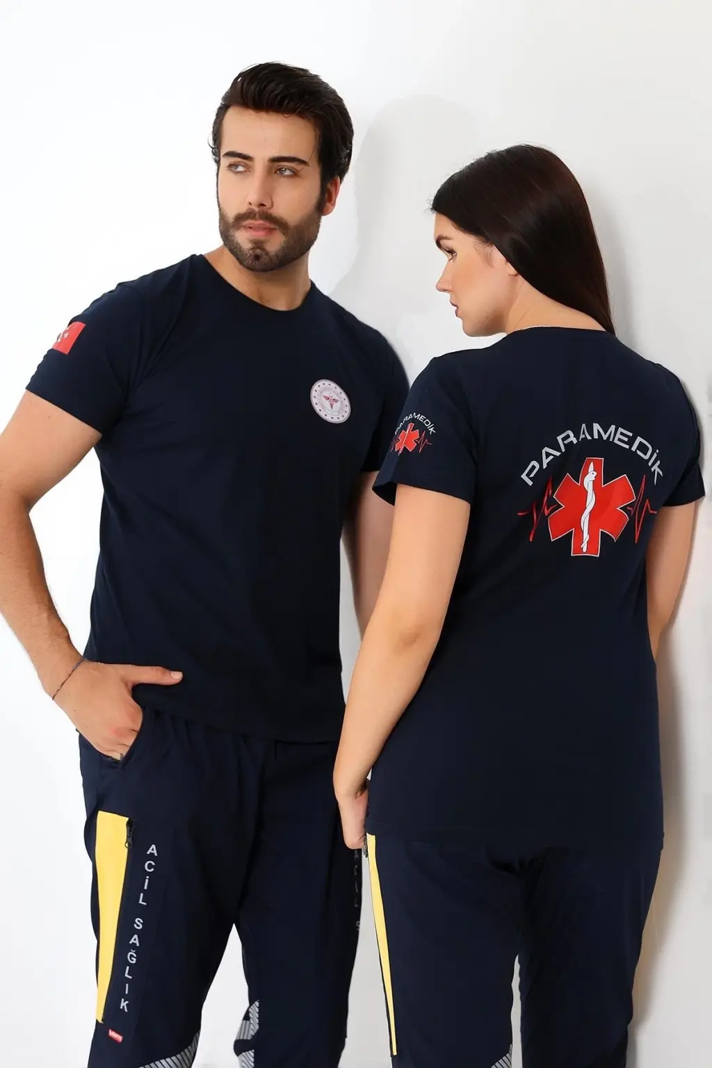 Paramedik Yuvarlak Yaka Penye Kısa Kol Tshirt - Lacivert