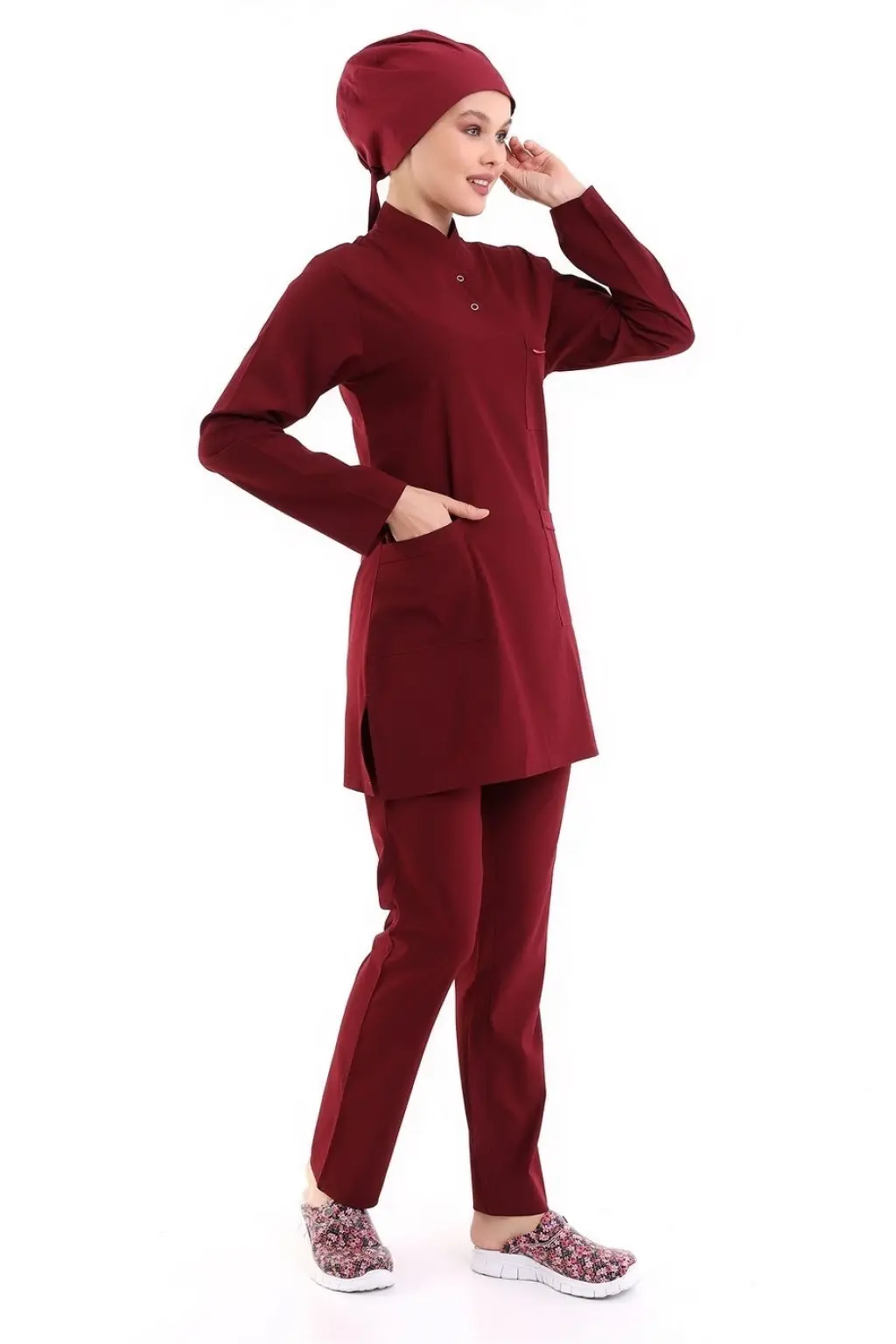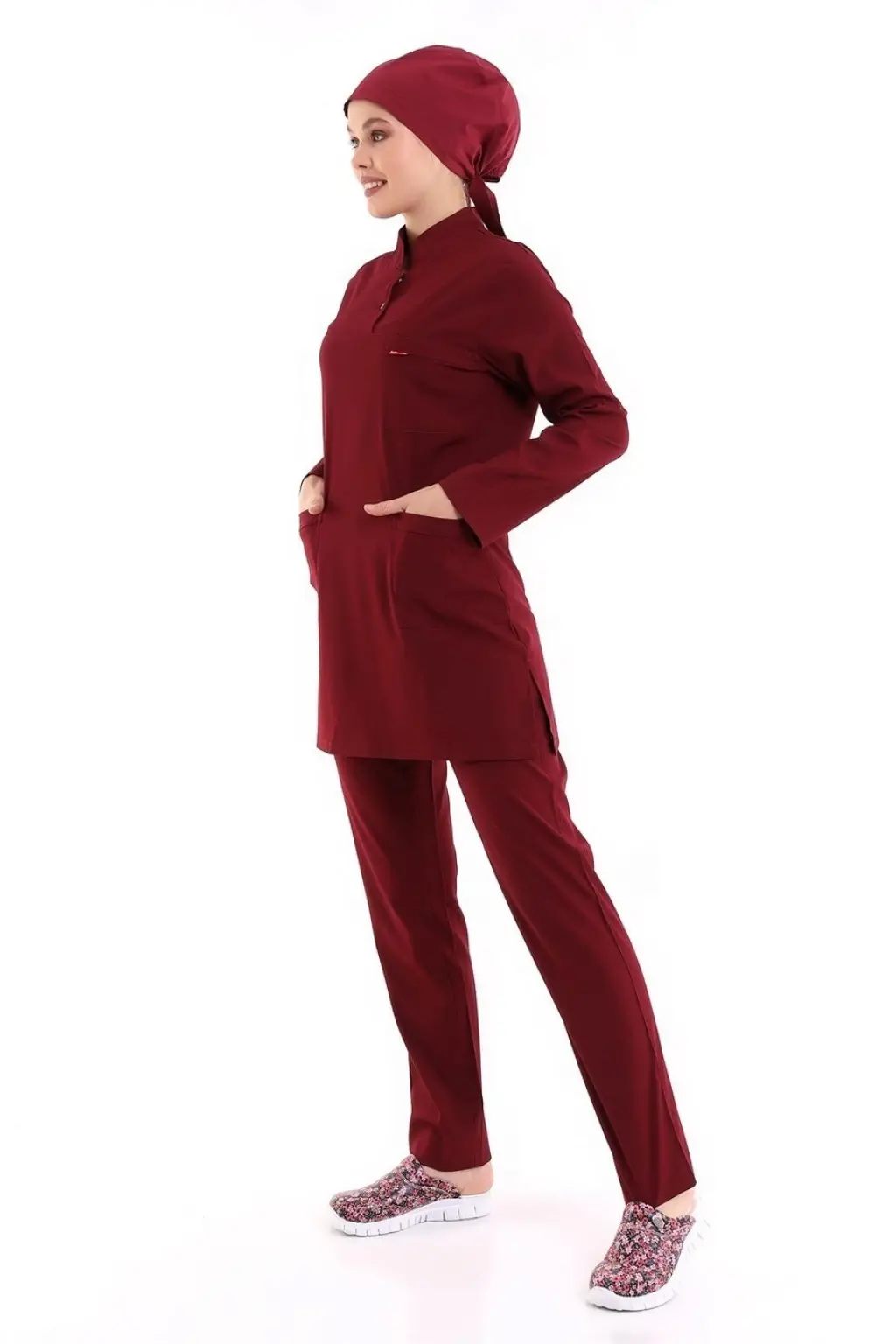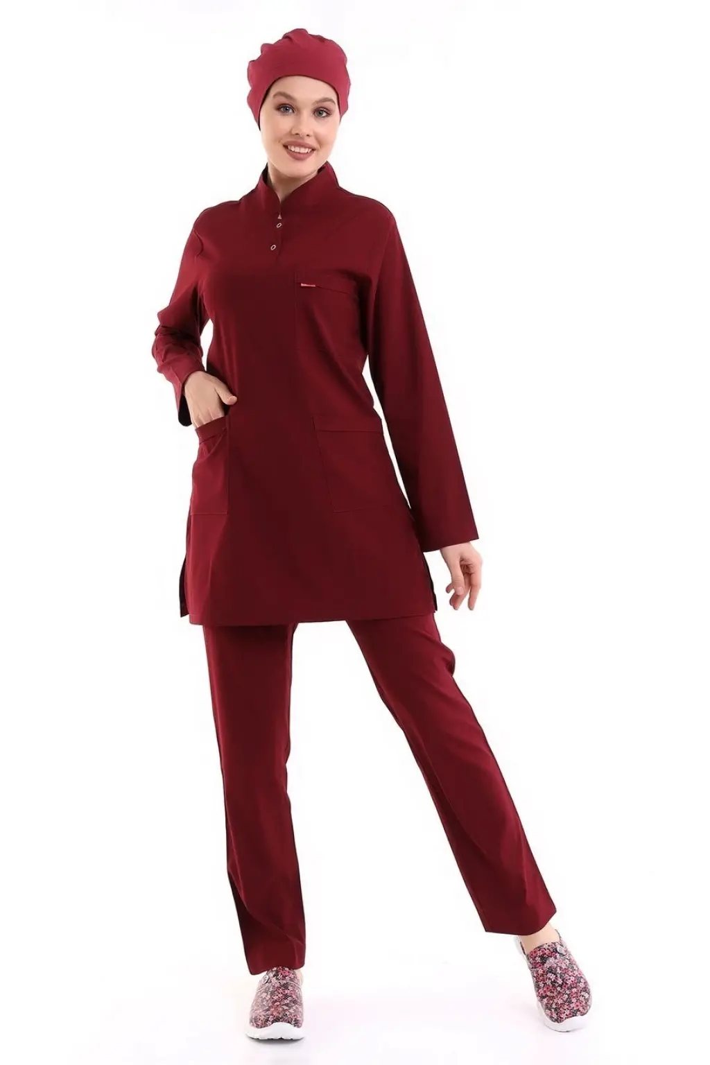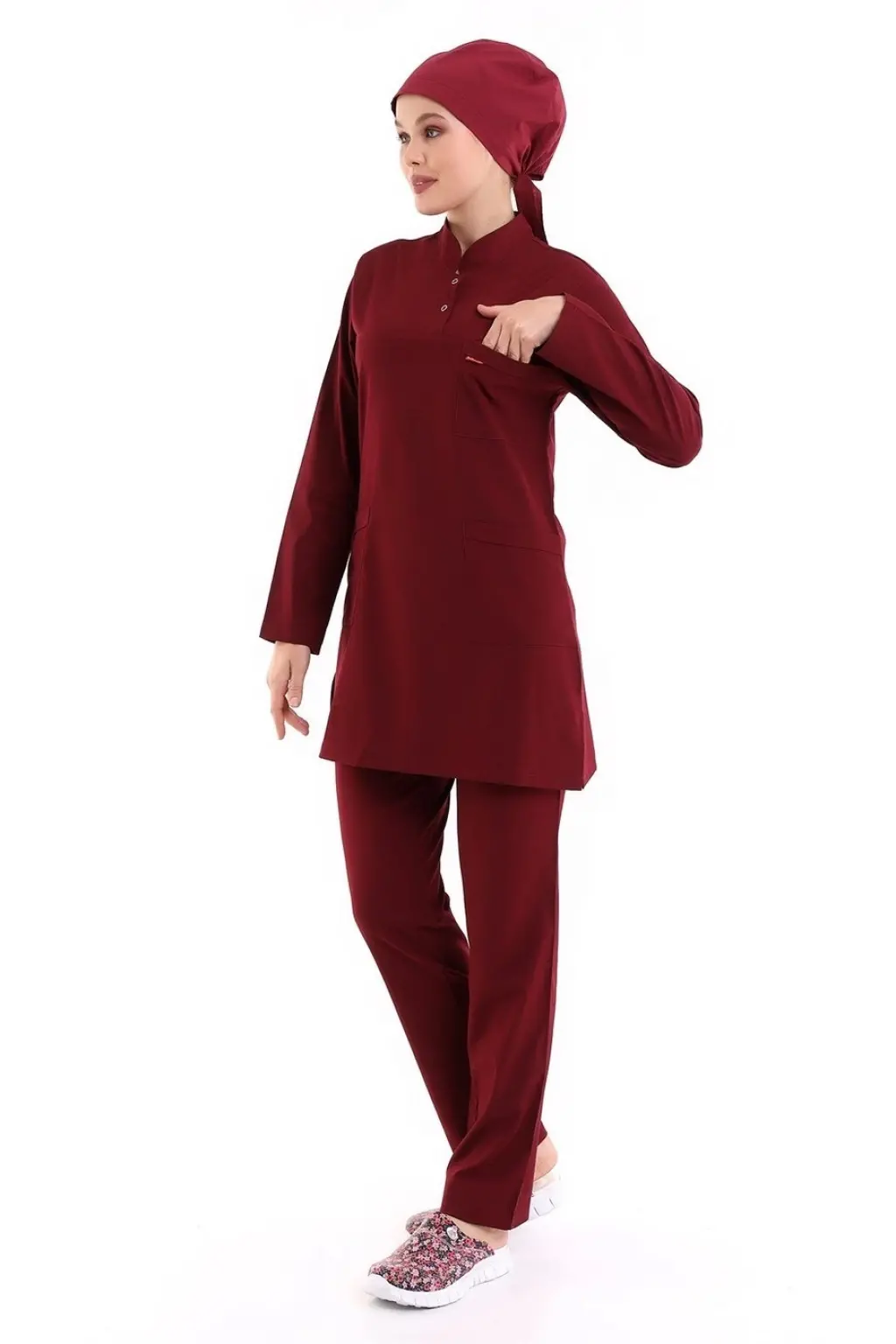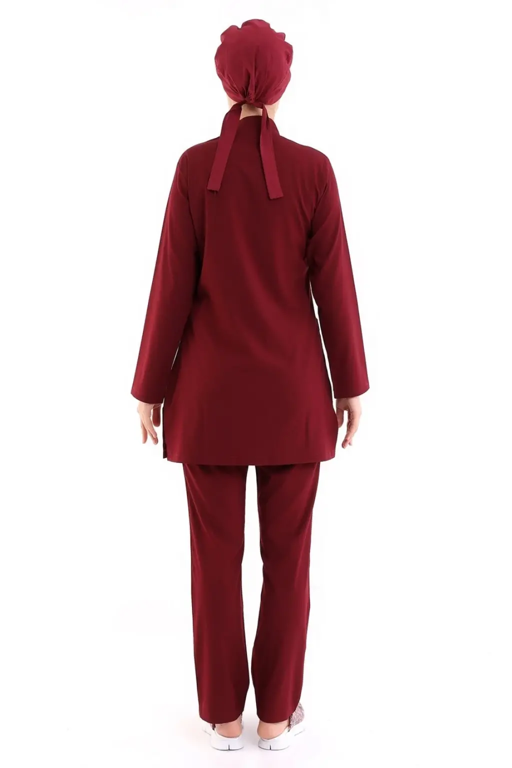 Soft Likralı Tesettür Forma Takım İki Çıtçıt - 6407 Bordo Soft