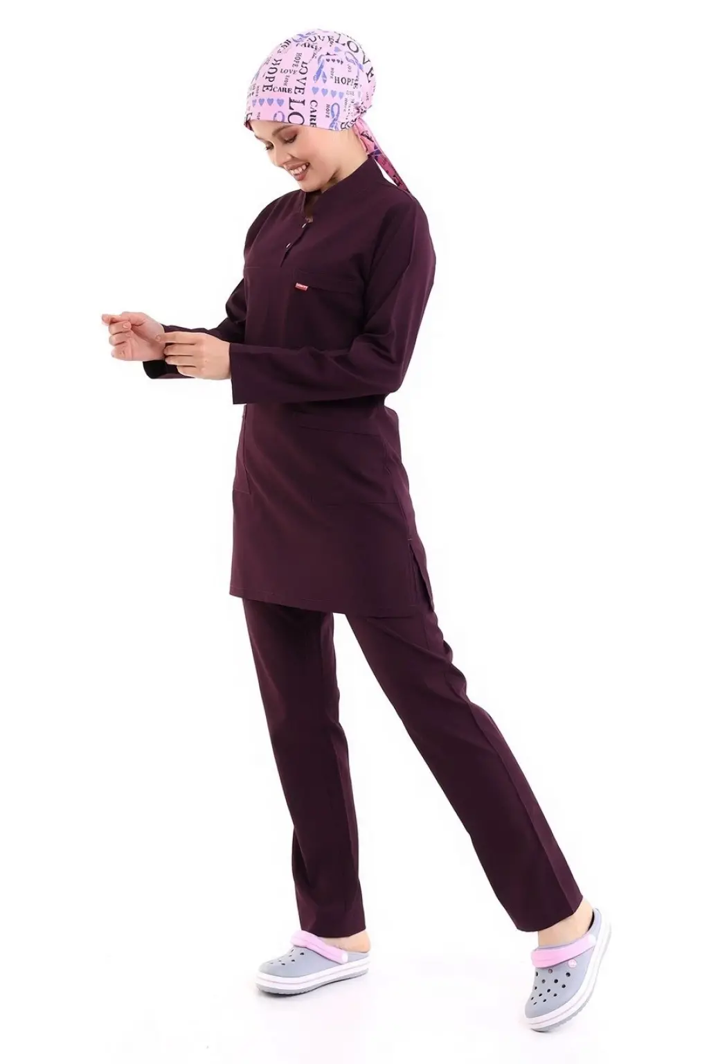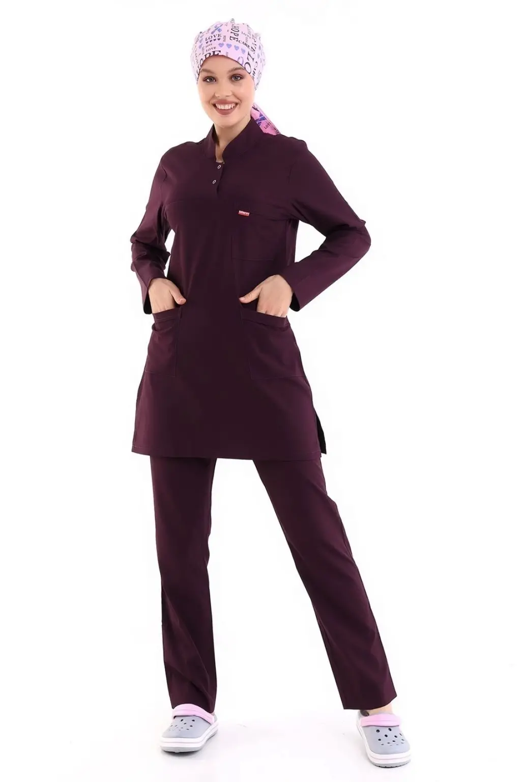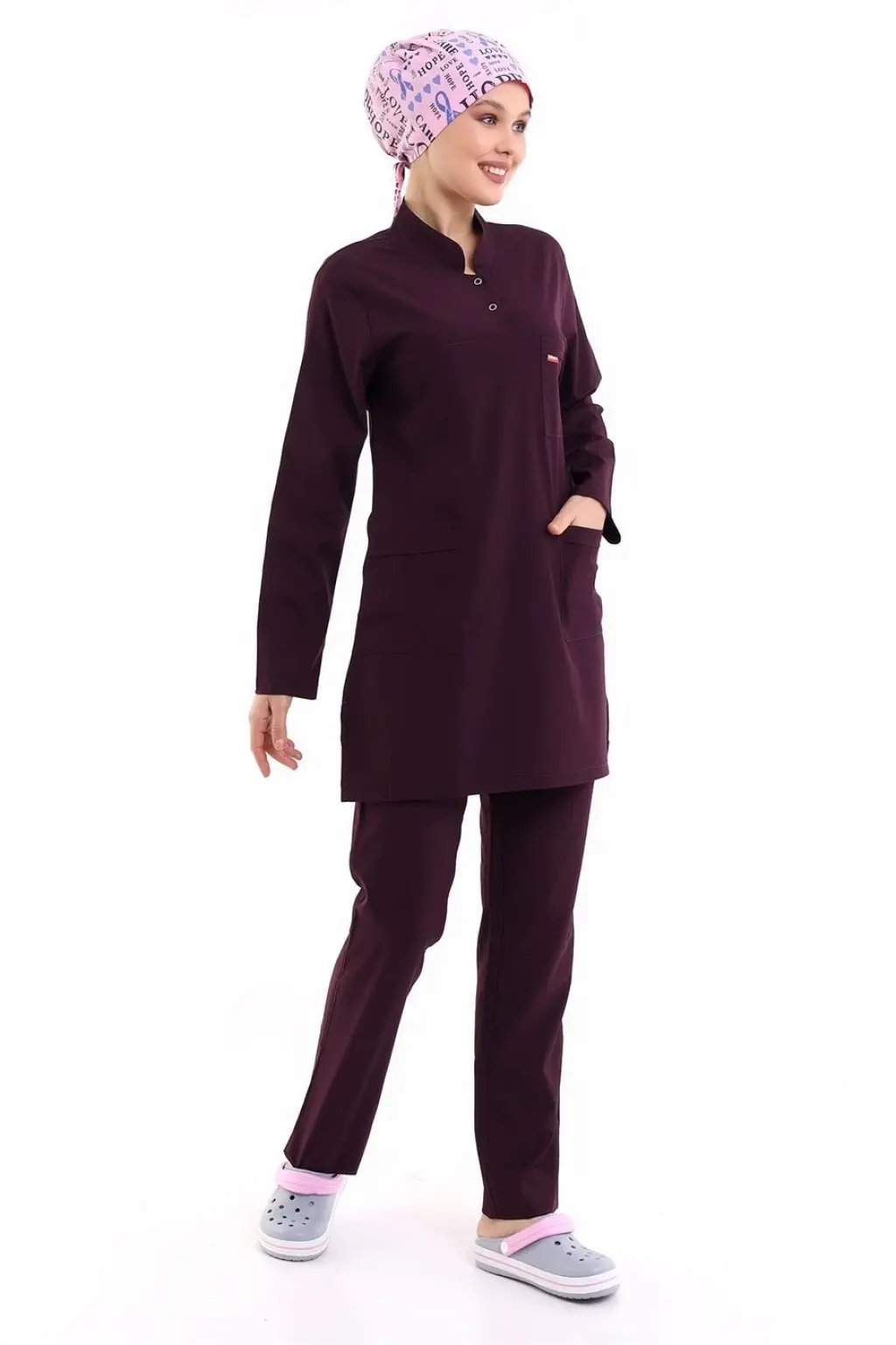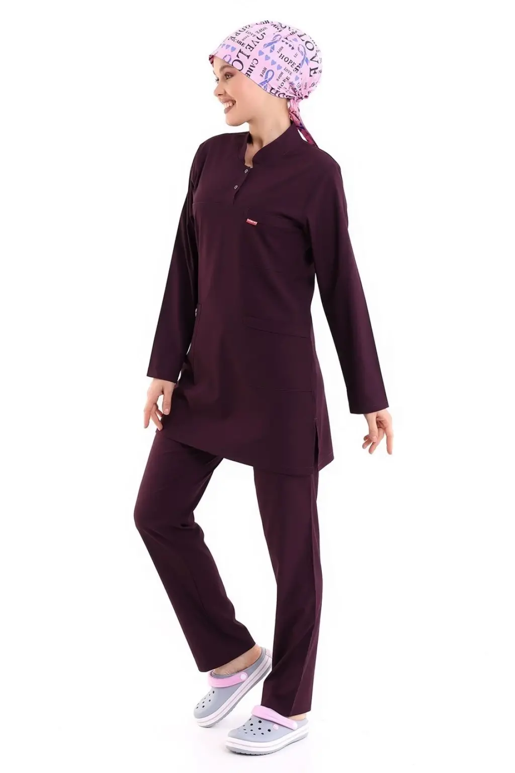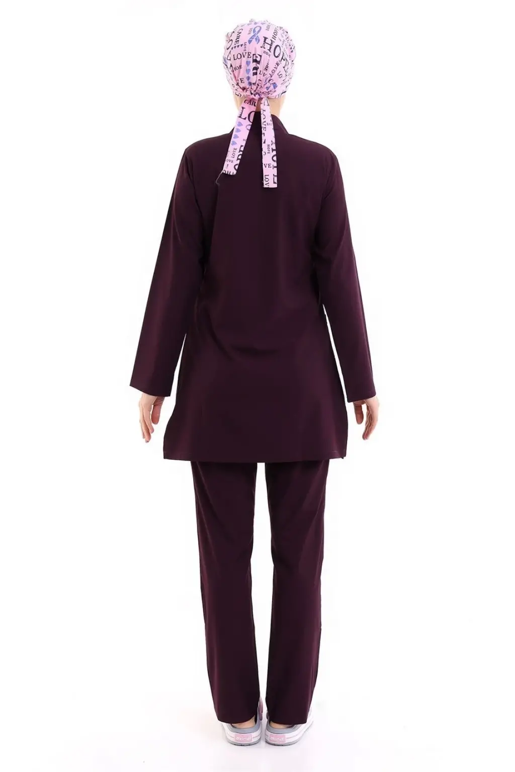 Soft Likralı Tesettür Forma Takım İki Çıtçıt - 6409 Mürdüm Soft