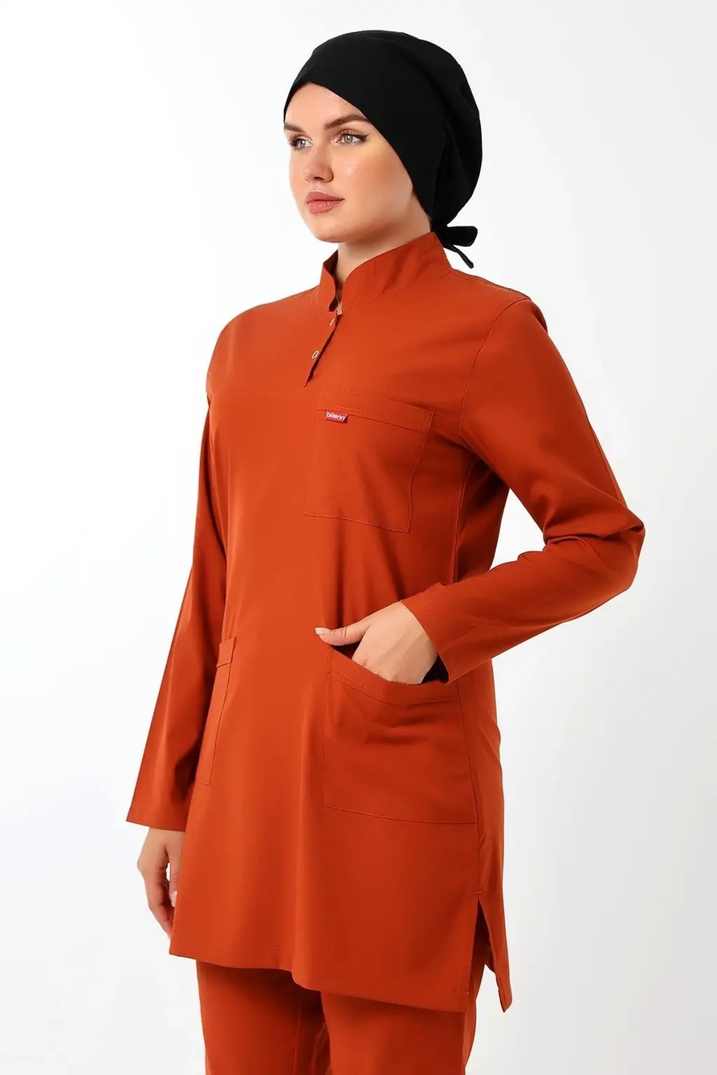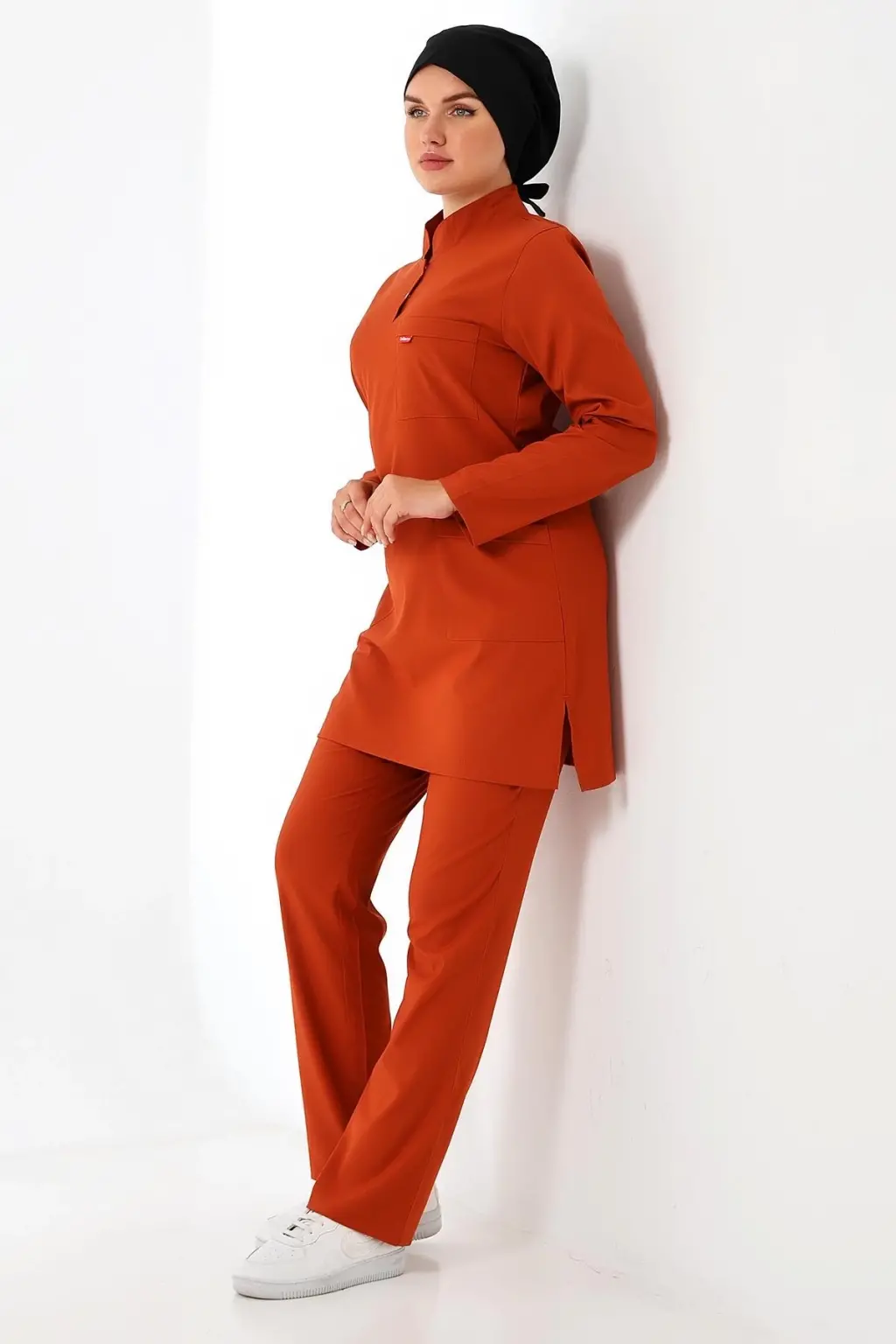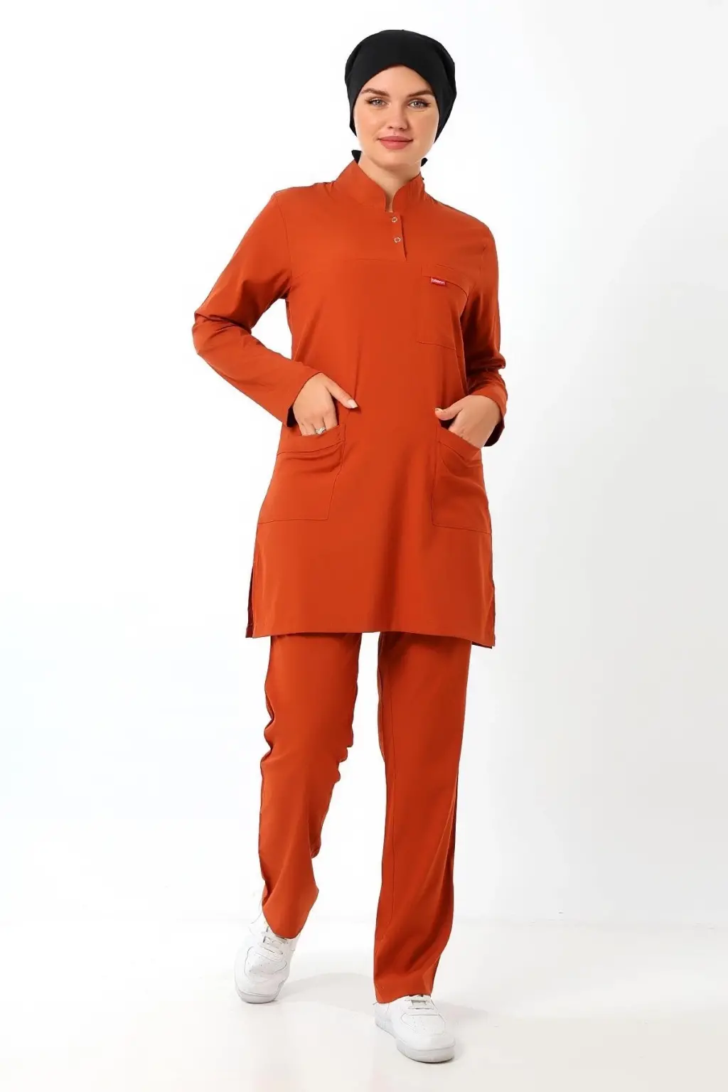 Soft Likralı Tesettür Forma Takım İki Çıtçıt - 6426 Kiremit