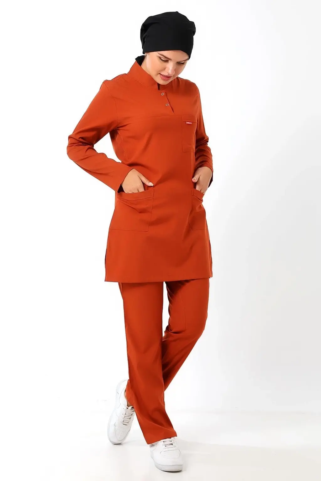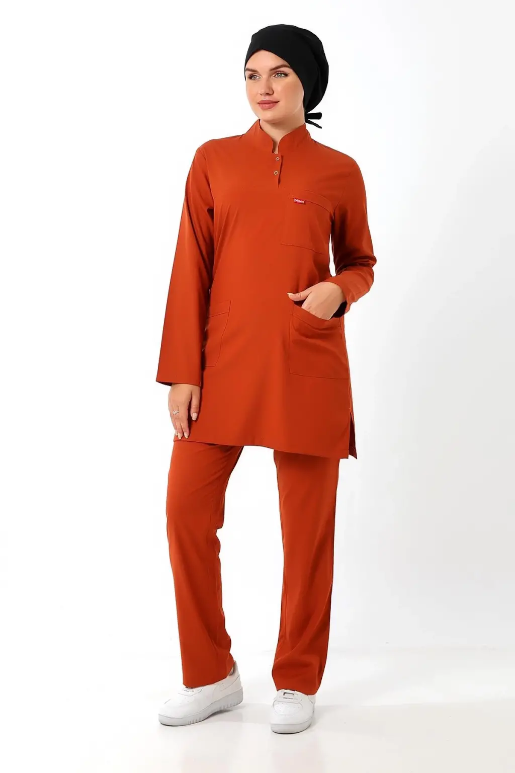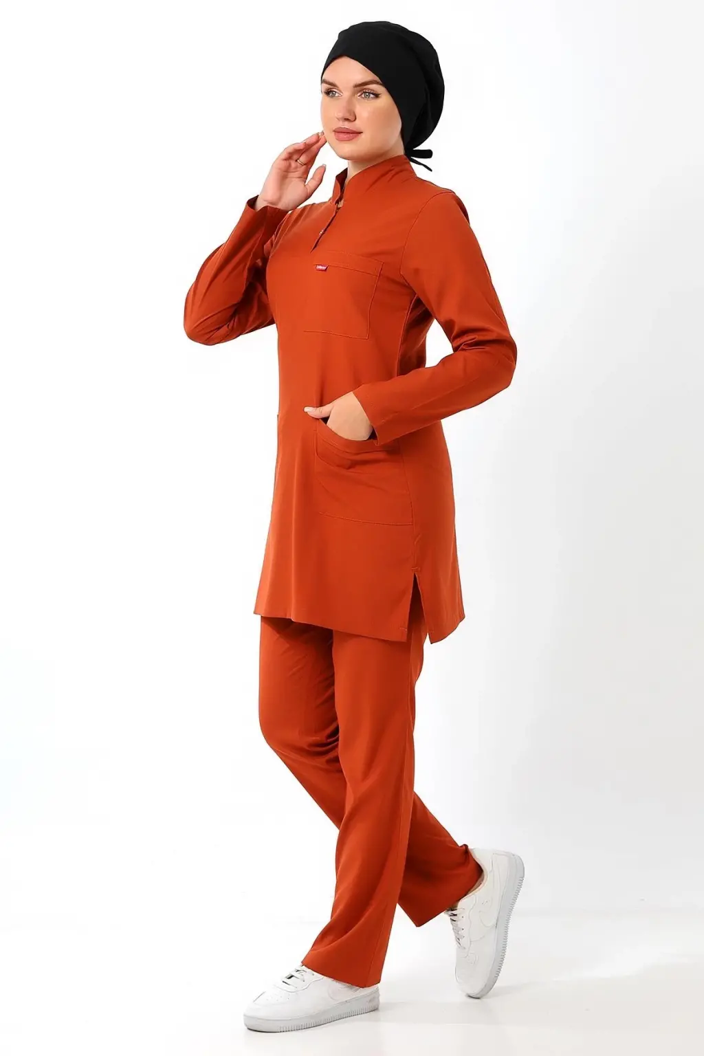 Soft Likralı Tesettür Forma Takım İki Çıtçıt - 6426 Kiremit