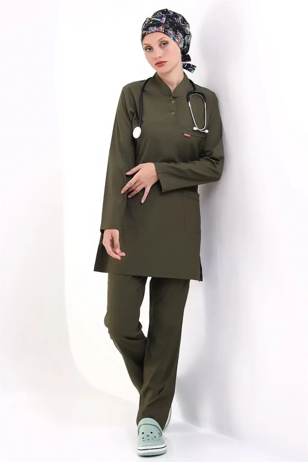 Soft Likralı Tesettür Forma Takım İki Çıtçıt - 6427 Haki Yeşili