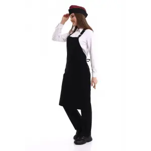 Barista Boyundan Askılı Önlük Çift Cepli - Siyah