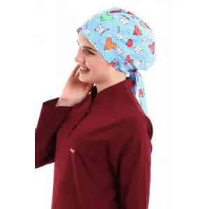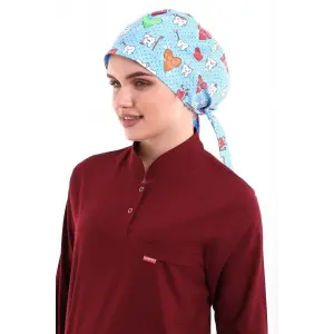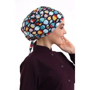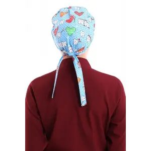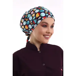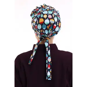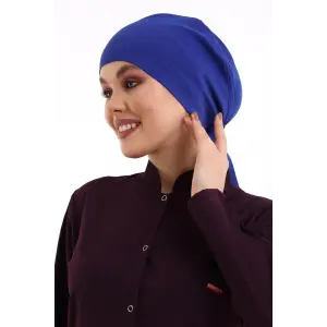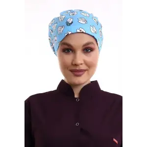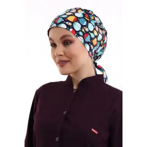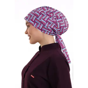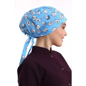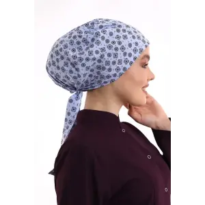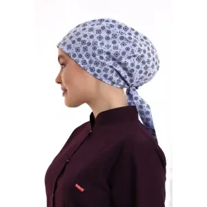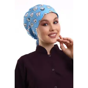 Tesettür Bone - 2301 Mavi Kilim Desenli