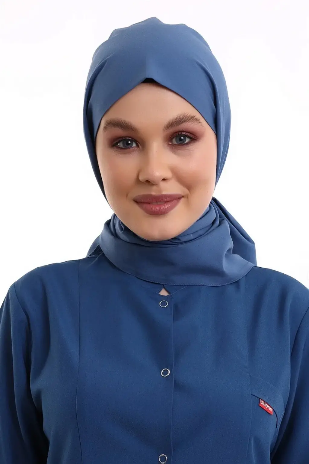 Tesettür Boyun Bağlamalı Bone - 119 Petrol Mavi