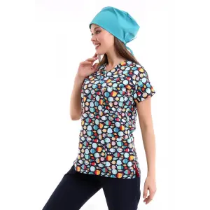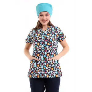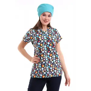 Desenli Tek Üst Scrubs Forma