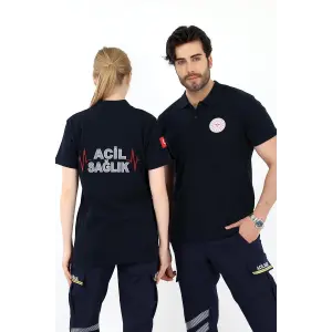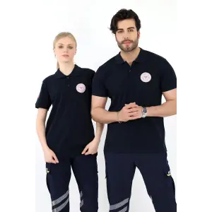 Acil Sağlık Yakalı Unisex Tshirt Kısa Kol Nakışlı - Lacivert