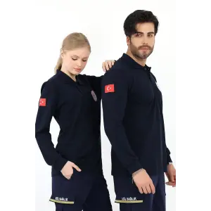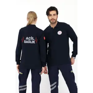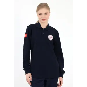 Acil Sağlık Yakalı Unisex Tshirt Uzun Kol Nakışlı - Lacivert