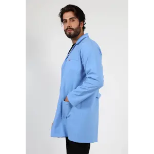 Doktor Öğretmen Erkek Önlük Ara Boy Ceket Yaka - 31 Açık Mavi