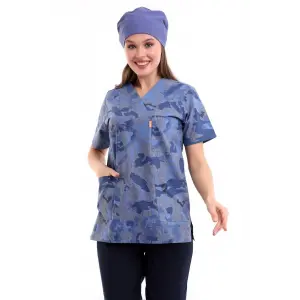 Zarf Yaka Desenli Üst - 3906 Açık Kamuflaj