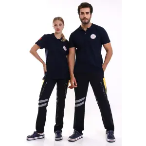 112 Acil Sağlık Yakalı Tshirt Kısa Kol Baskılı - Lacivert