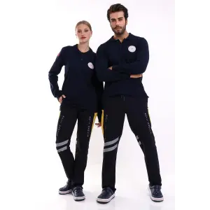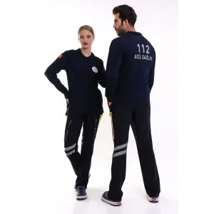 112 Acil Sağlık Yakalı Tshirt Uzun Kol Baskılı - Lacivert