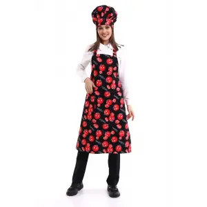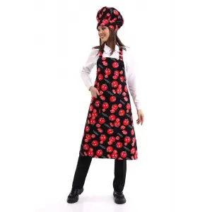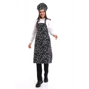 Desenli Askılı Önlük - 3803 Siyah Fincan