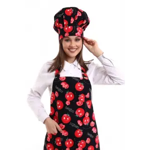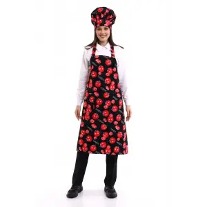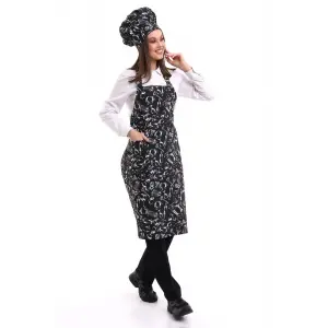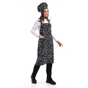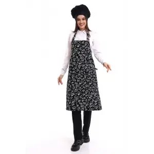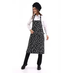 Desenli Askılı Önlük - 2502 Siyah Merdane