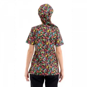 Zarf Yaka Desenli Üst - 9007 Renkli Kuru Kafa