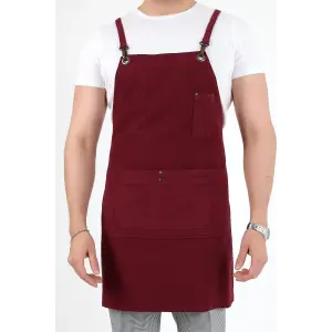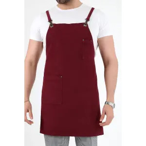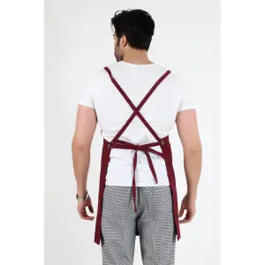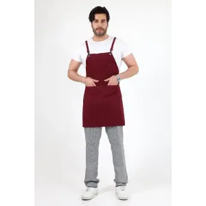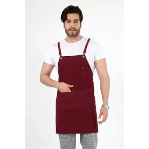 Barista Askılı Önlük Kanguru Cepli - Bordo