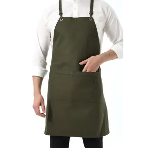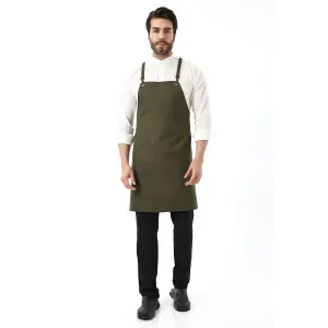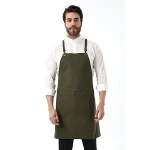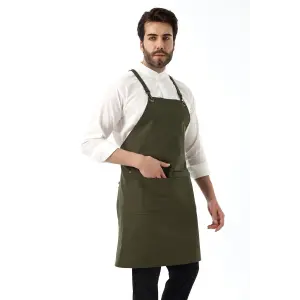 Barista Askılı Önlük Kanguru Cepli - Yeşil